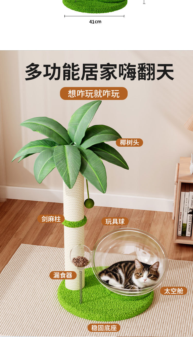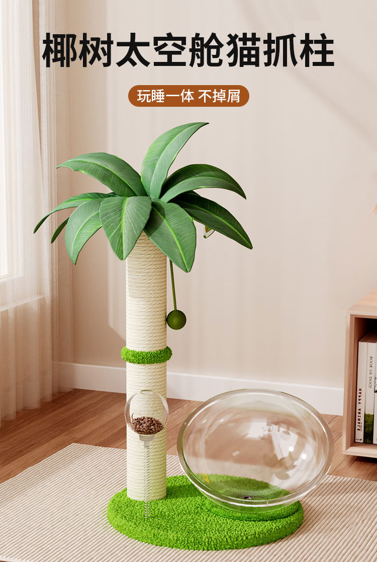 공간 캡슐 코코넛 나무 고양이 등반 프레임 고양이 테이 스틱 고양이 둥지 삐걱 거리는 음식 공 장난감 시살 연삭 클로 고양이 잡아 열 셀프 하이 고양이