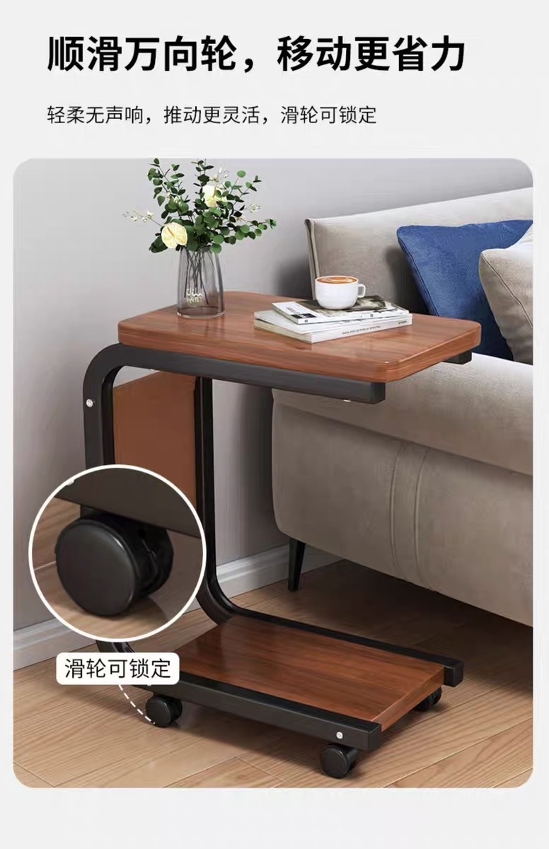 바퀴가 달린 이동식 사이드 테이블 작은 커피 테이블 소파 사이드 테이블 음료수 및 차 먹는 침대 옆 장치