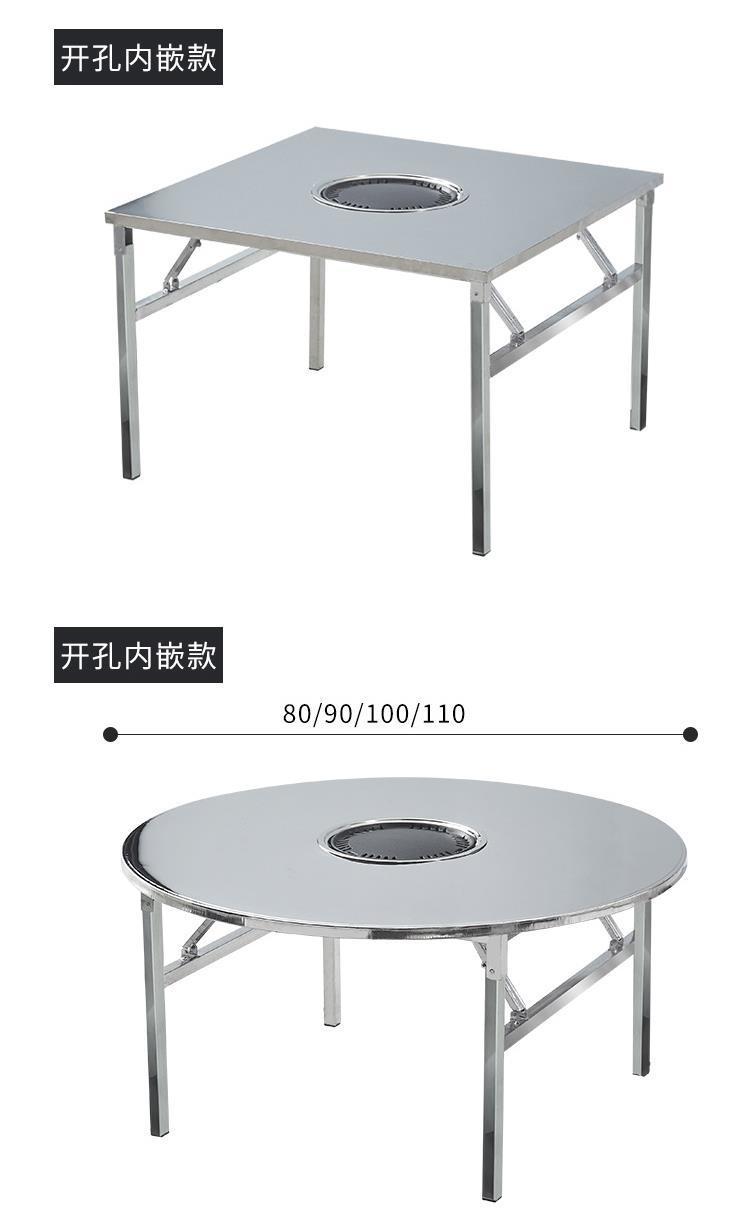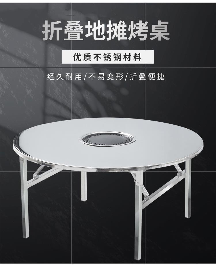 대형 원형 테이블 야외 상업용 스테인레스 스틸 노점 바베큐 냄비 테이블 접이식 호텔 가정용 편리한 보관