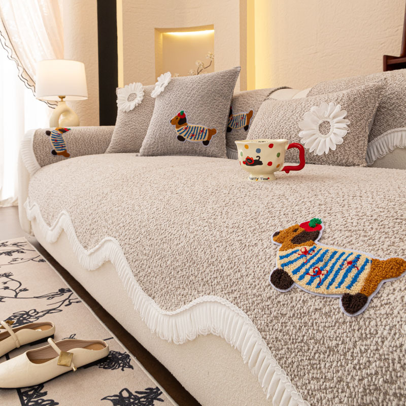 Chenille 만화 소파 쿠션 사계절 유니버설 2025 새로운 인라인 쿠션 미끄럼 방지 소파 커버 천 수건스토어 가기