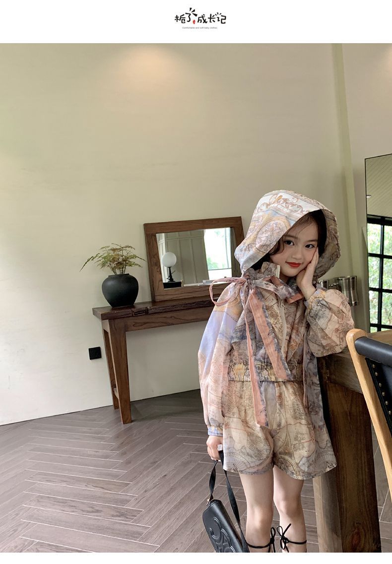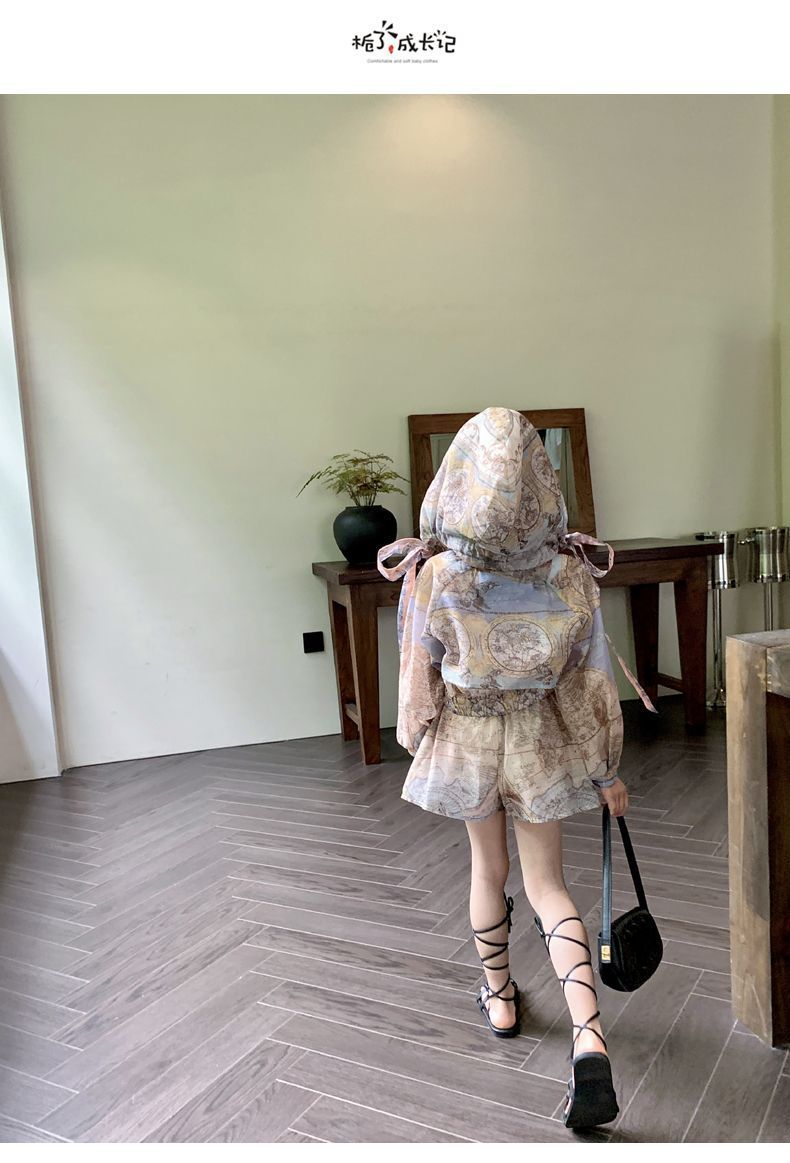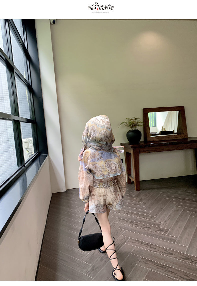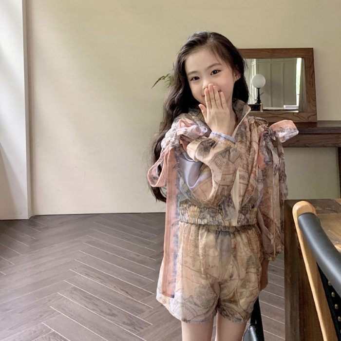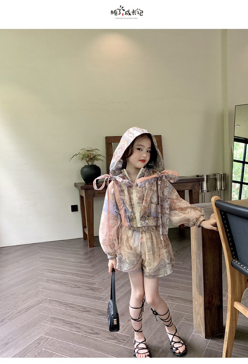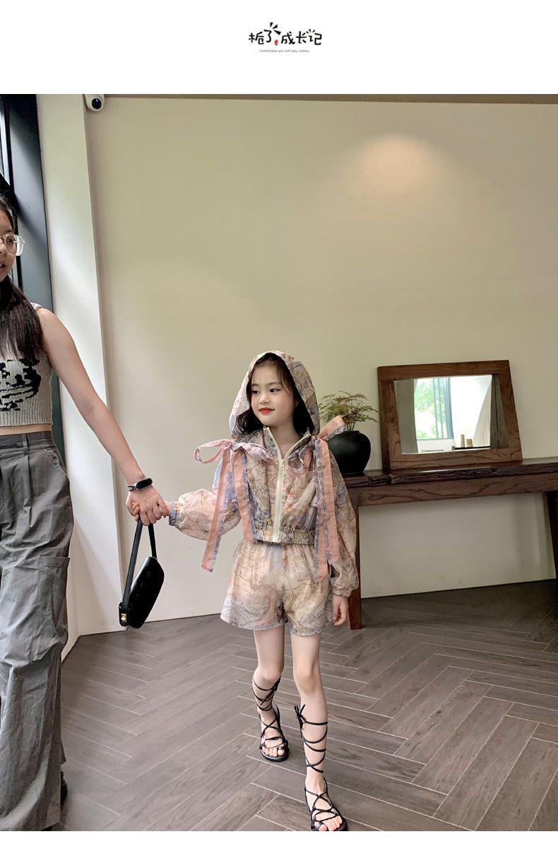 소녀 세트 여름 2025 새로운 어린이 짧은 후드 태양 보호 재킷 반바지 소녀 여름 투피스 세트