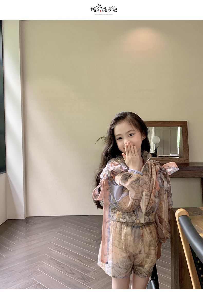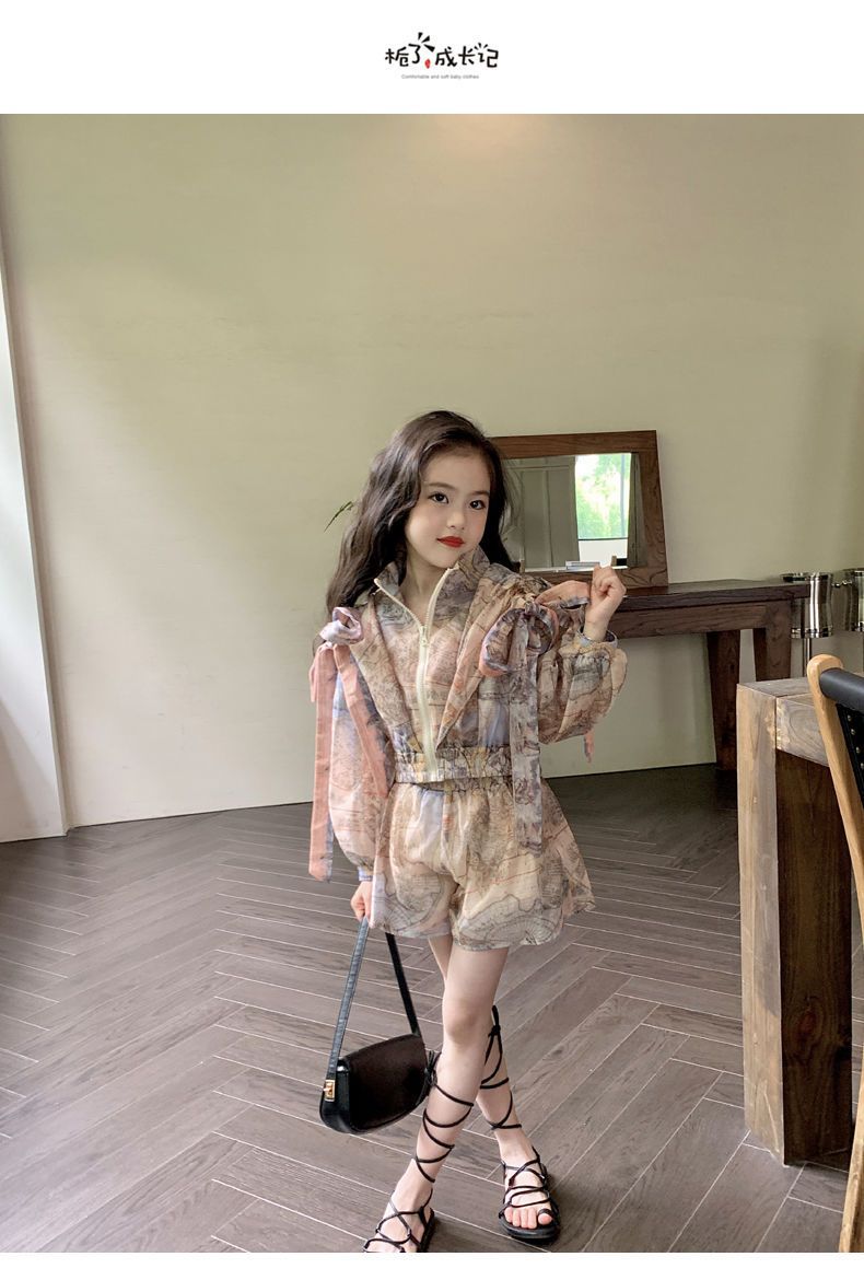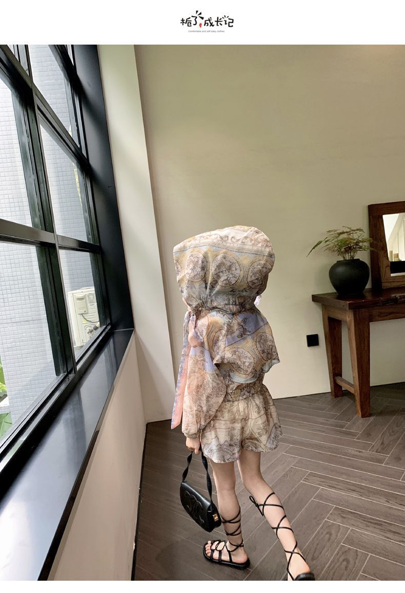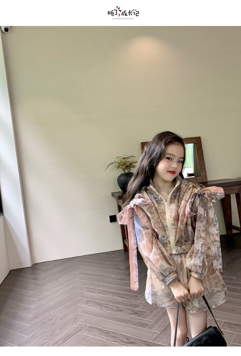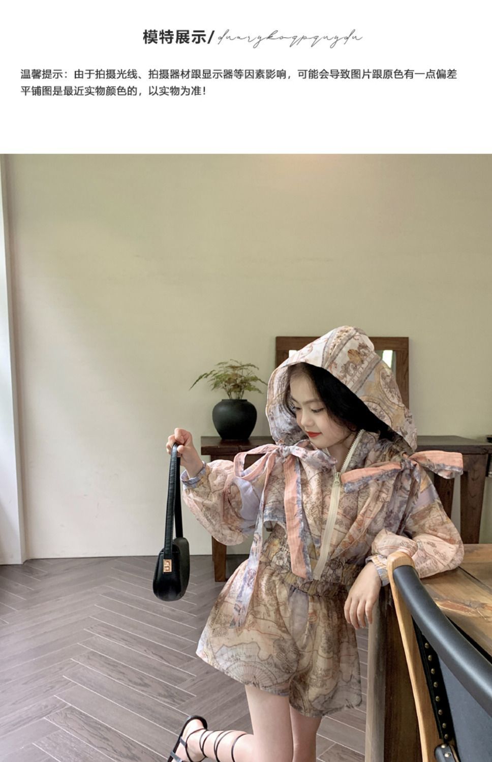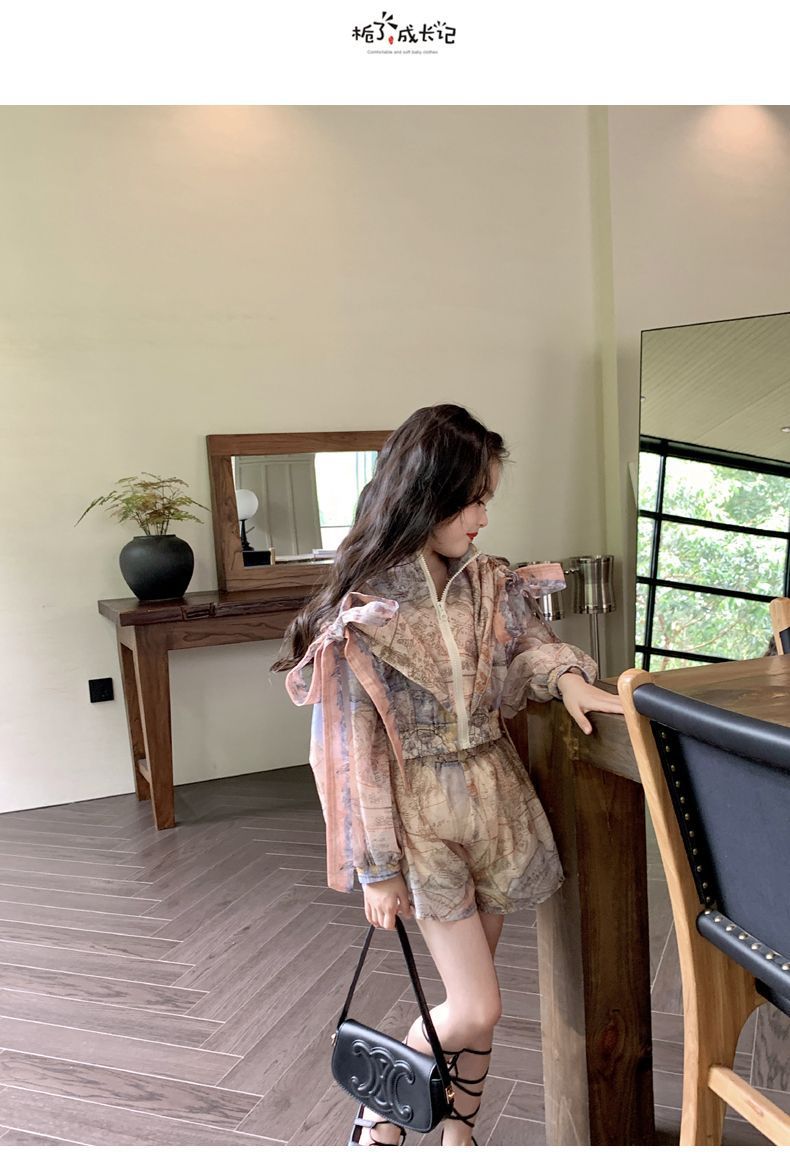 소녀 세트 여름 2025 새로운 어린이 짧은 후드 태양 보호 재킷 반바지 소녀 여름 투피스 세트