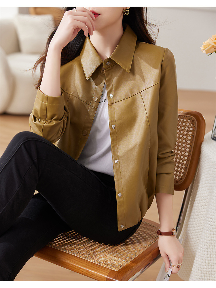 2025 새로운 여성 셔츠 짧은 가죽 자켓 봄과 가을 한국 스타일 느슨한 슬리밍 인터넷 연예인 핫 재킷
