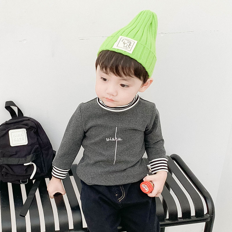벨벳/벨벳 없음 아기 티셔츠 소녀 겨울 하이 칼라 두꺼운 소년 긴팔 셔츠 외국 스타일 아동상의