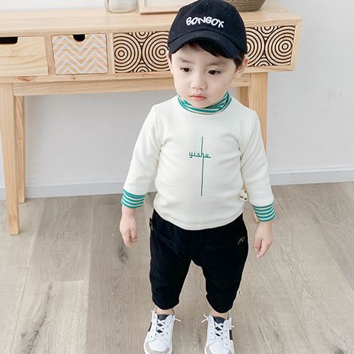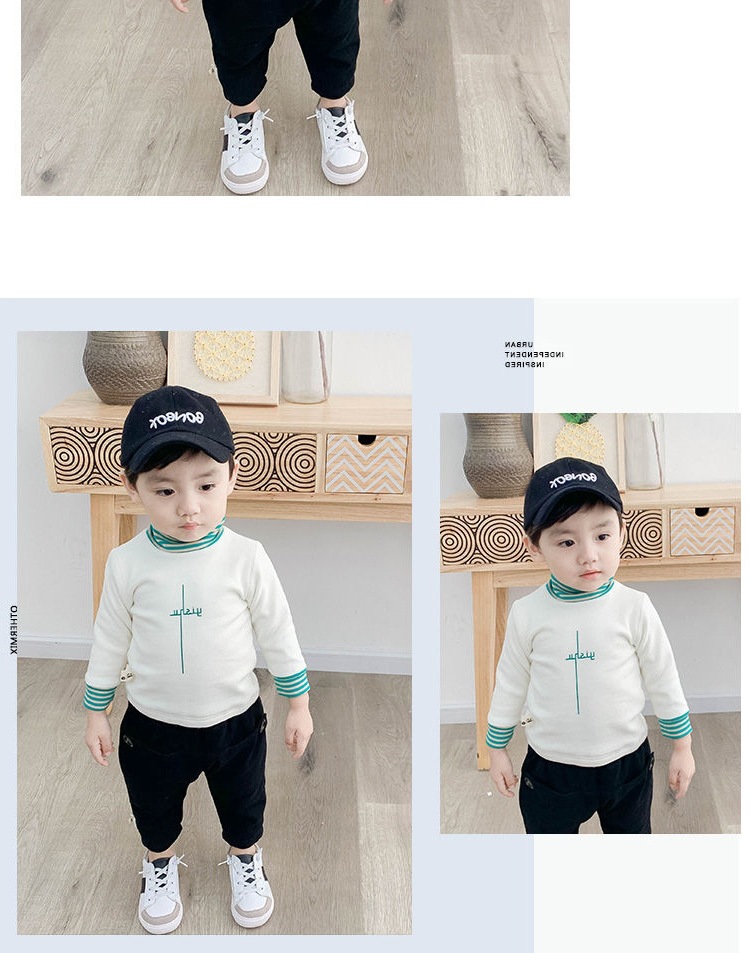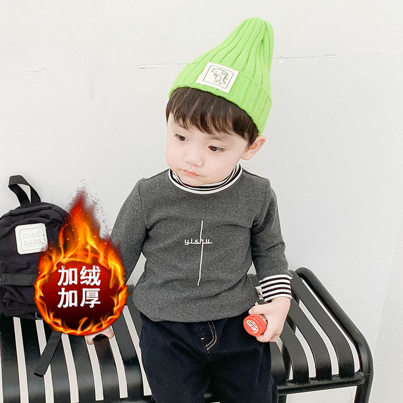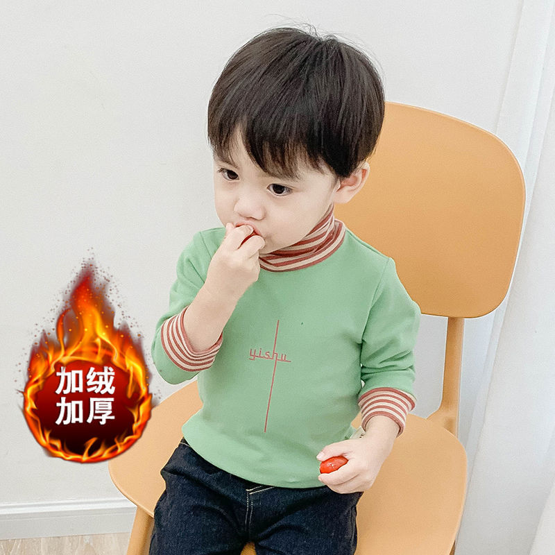벨벳/벨벳 없음 아기 티셔츠 소녀 겨울 하이 칼라 두꺼운 소년 긴팔 셔츠 외국 스타일 아동상의스토어 가기
