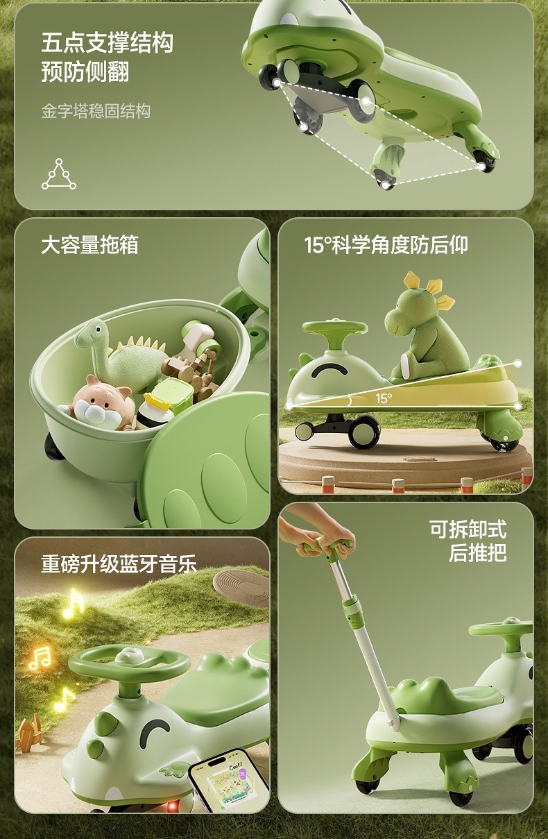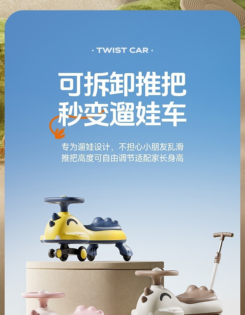 새로운 흑백 컬러 만화 공룡 스타일 아기 소품 트위스트 자동차 아기 한 살짜리 선물 장난감 자동차는 밀고 슬립할 수 있습니다