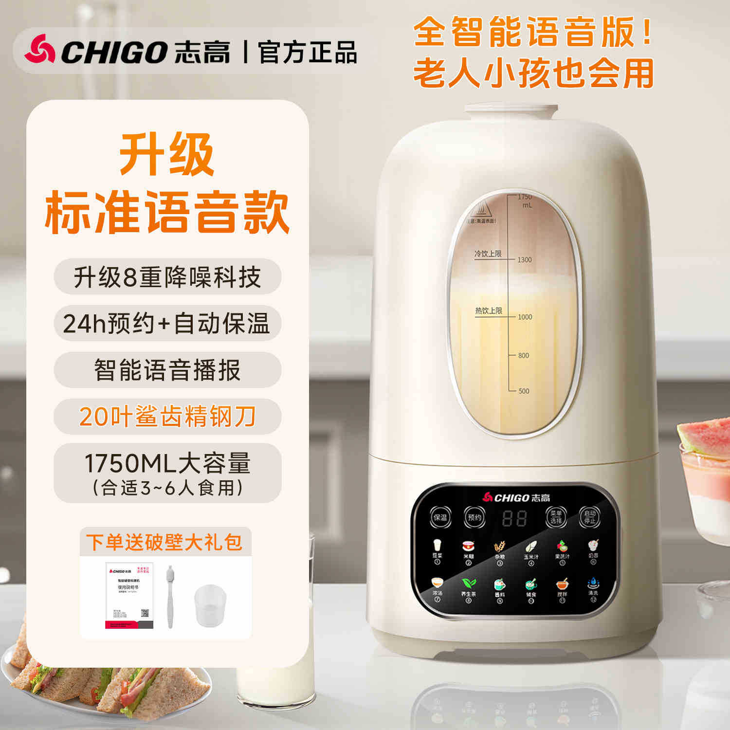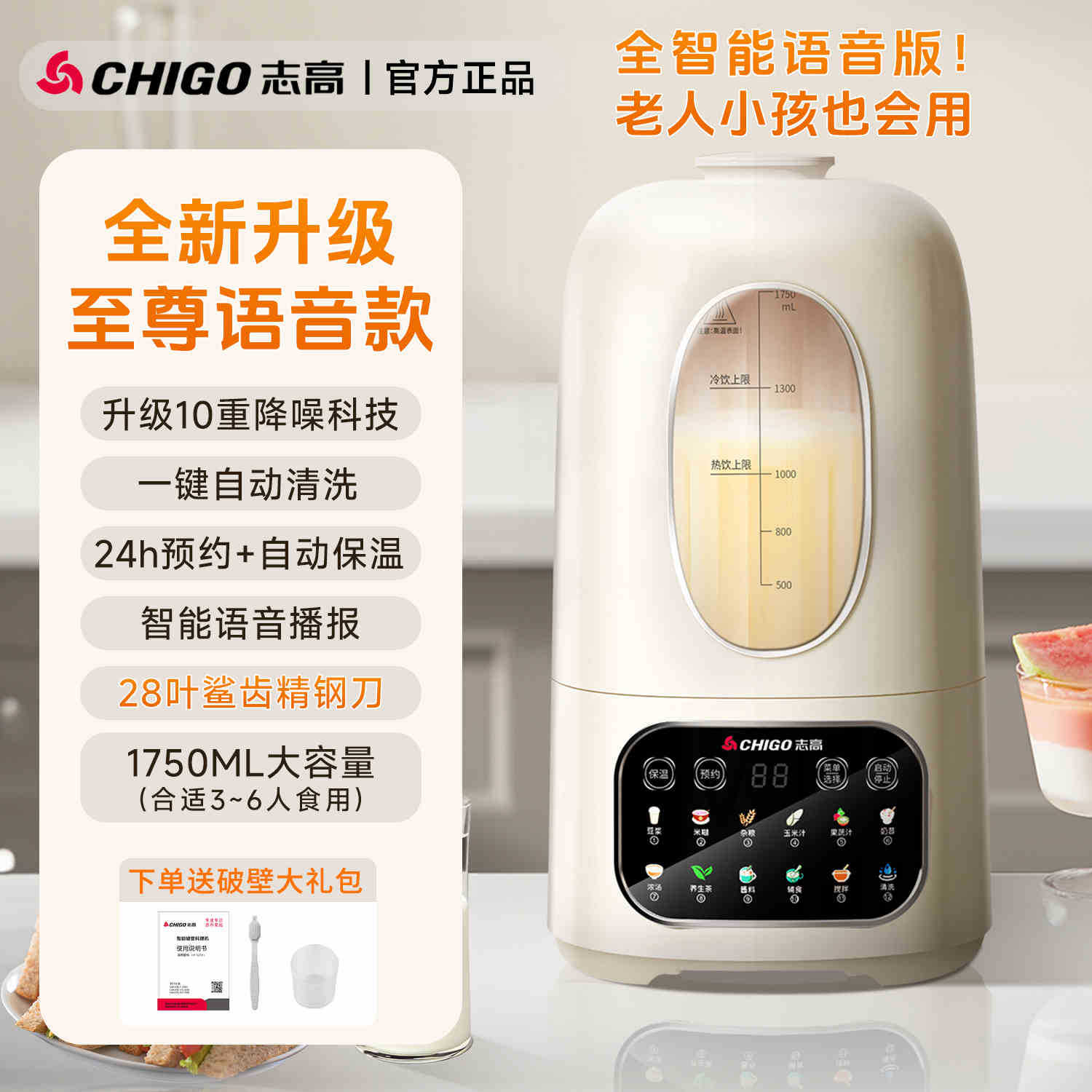 Chigo 공식 벽 파괴 기계 가정용 소형 두유 기계 주스 다기능 올인원 기계 정품 요리 기계 U9스토어 가기