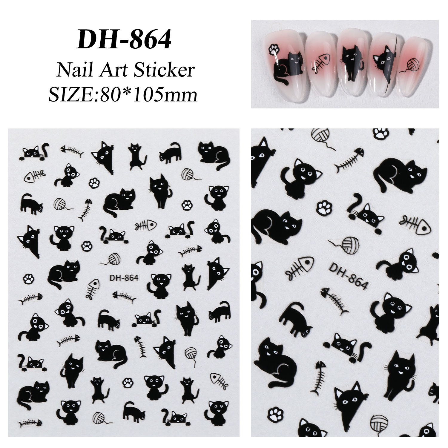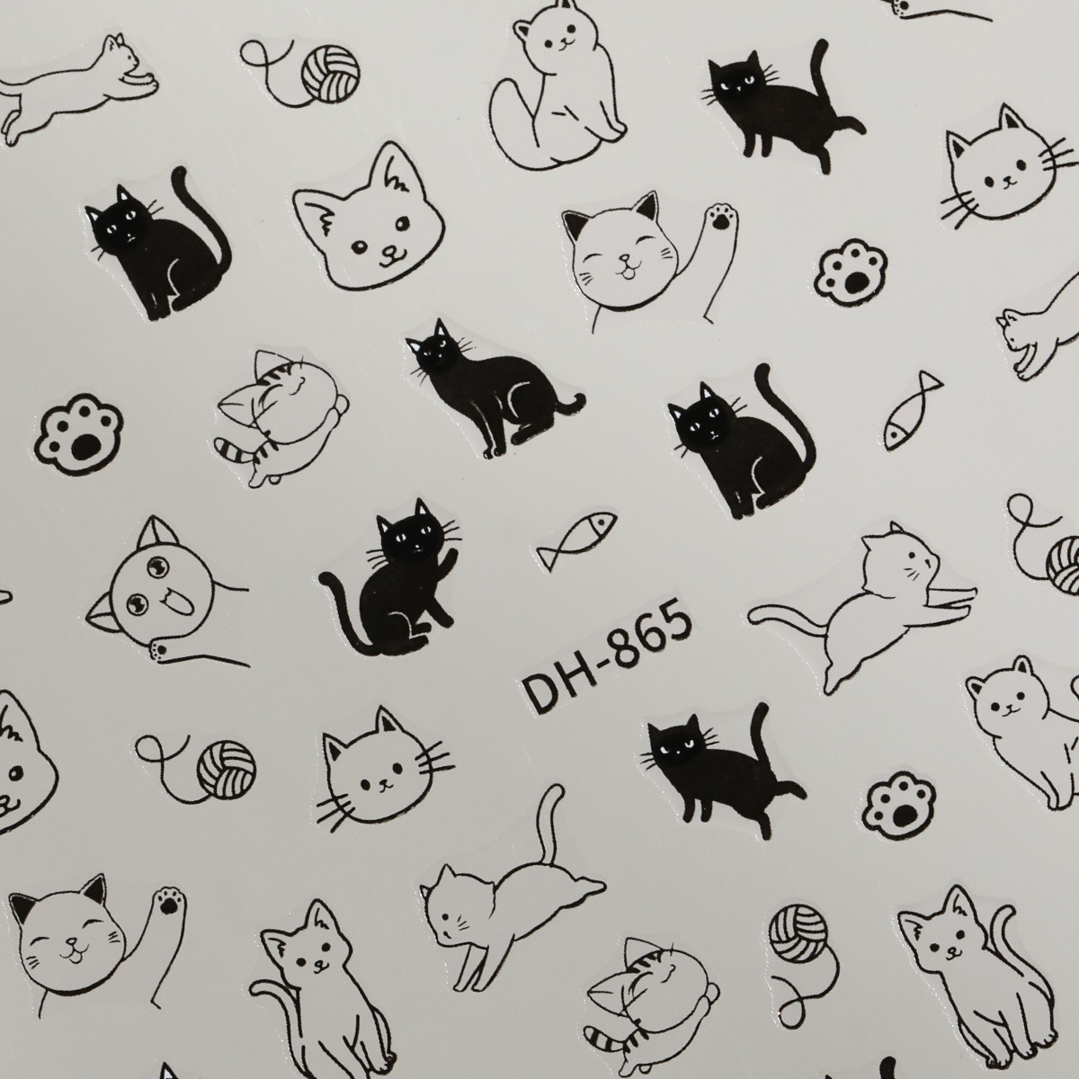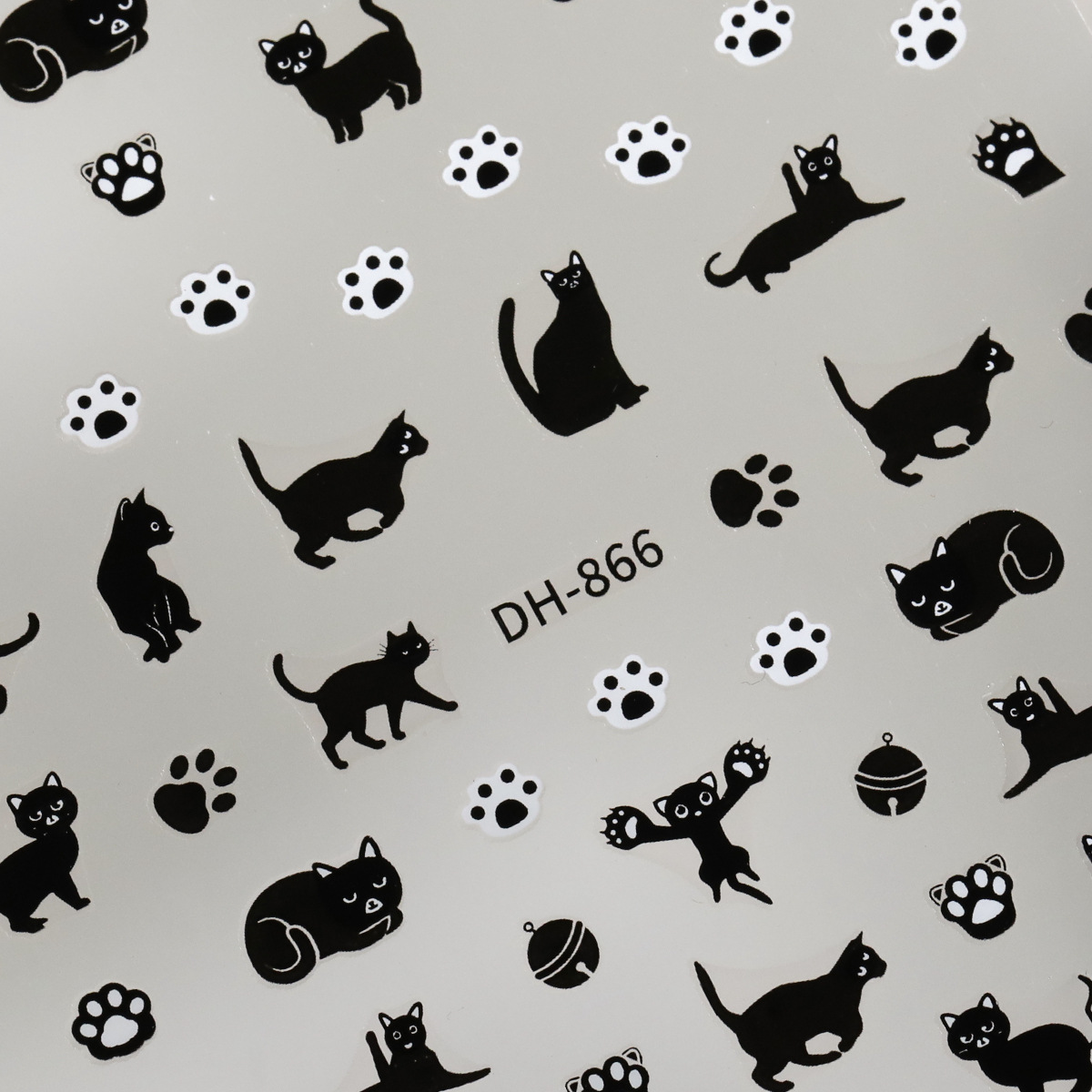Ins 낙서 검은 고양이 네일 스티커 플랫 귀여운 고양이 발자국 작은 패턴 네일 아트 스티커 쥬얼리 DH 스타일스토어 가기