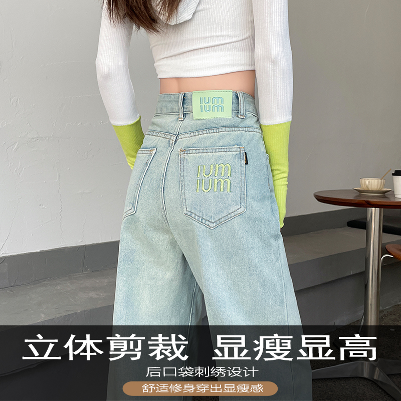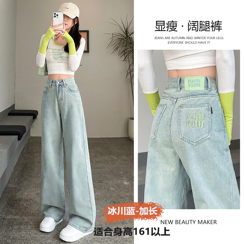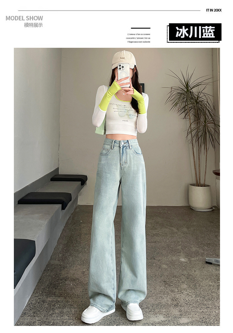 넓은 다리 청바지 여성의 2025 봄 새로운 폭발 높은 허리 슬리밍 느슨한 좁은 판 스트레이트 바지 드래그스토어 가기