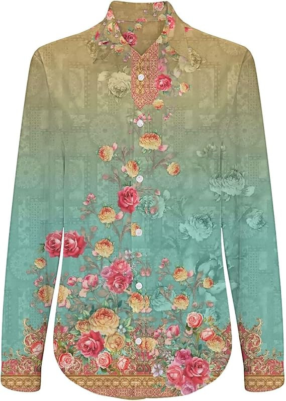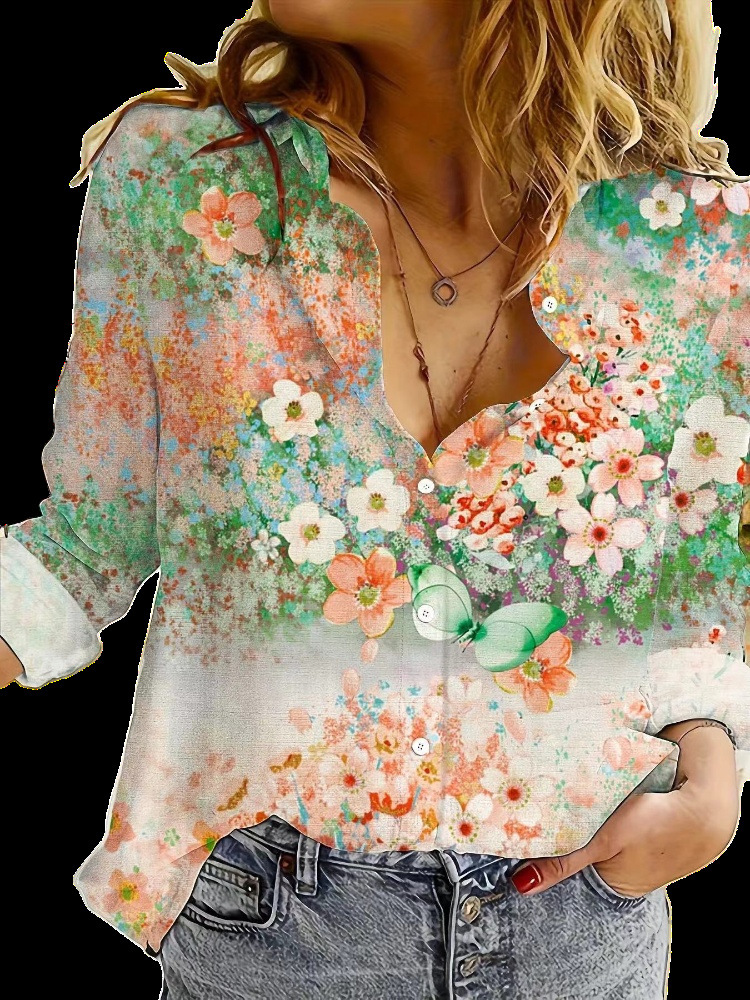 2025 국경 간 유럽과 미국의 새로운 여성 패션 그라디언트 컬러 인쇄 여성 셔츠 느슨한 긴팔 카디건 셔츠 여성스토어 가기