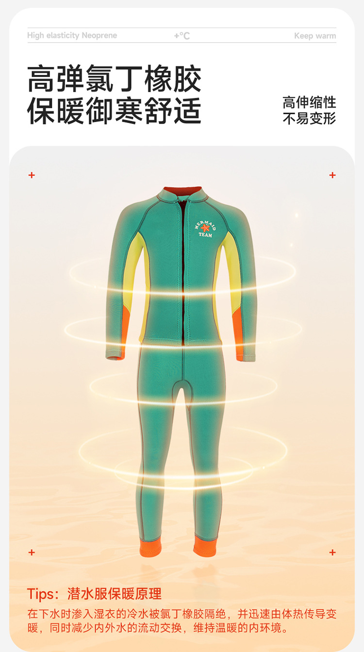 어린이용 다이빙 슈트 2.5MM 장비 야외 스포츠 부력 수영 방한 보온 수영복 학생용 프리다이빙