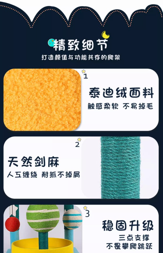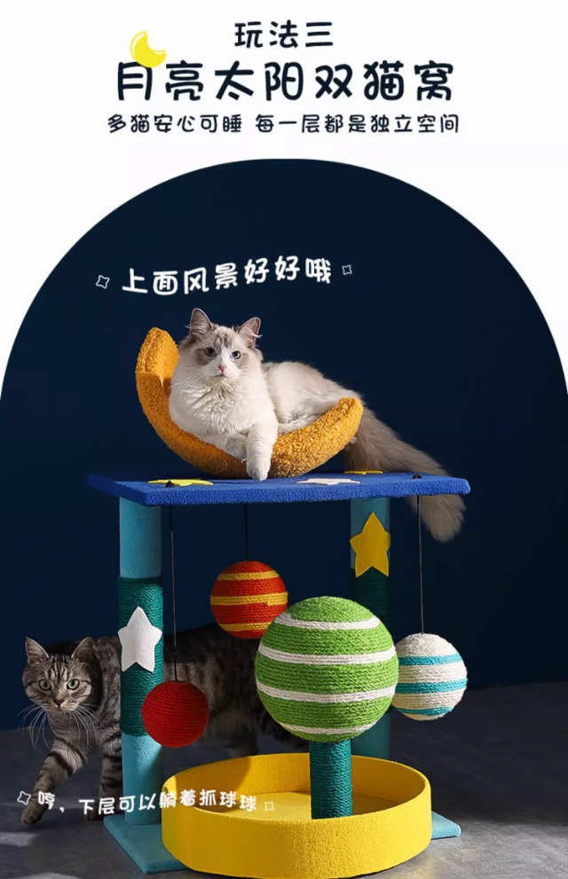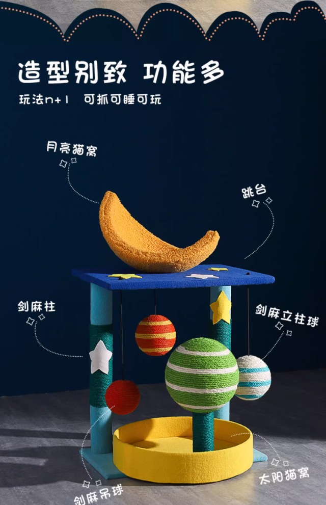 • [해, 달, 별 + 비행접시 공 잡기] 별이 빛나는 하늘 고양이 등반 프레임 (튼튼하고 안정적이며 다양한 기능)