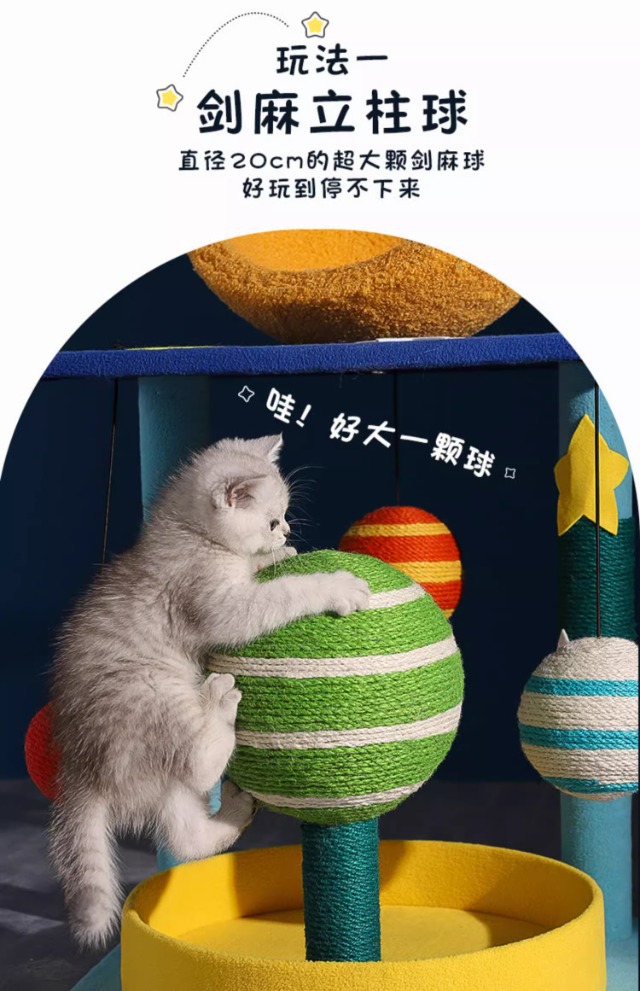 • [우주 캡슐 + 달 둥지 + 비행 접시 공 잡기] 별이 빛나는 하늘 고양이 등반 프레임 (강력하고 안정적이며 다양한 기능)