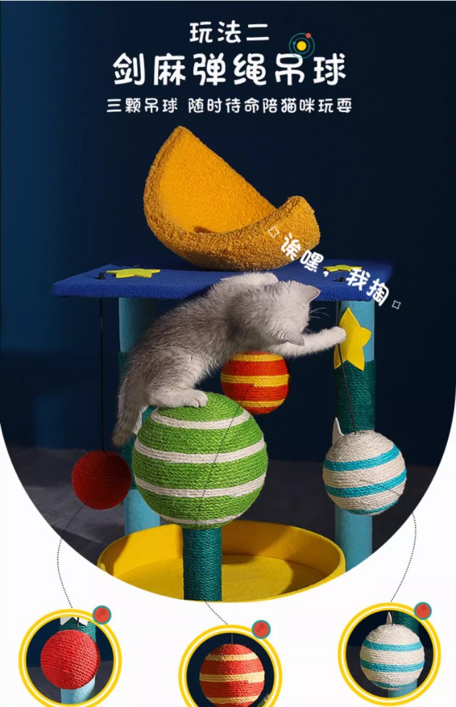 • [비행접시 공 잡기 + 달둥지] 별이 빛나는 하늘 고양이 등반 프레임 (튼튼하고 안정적이며 다양한 기능)