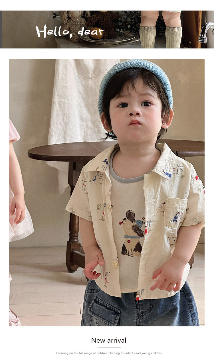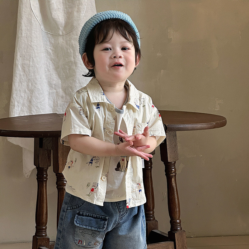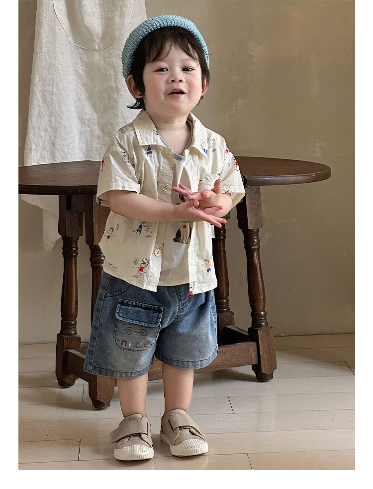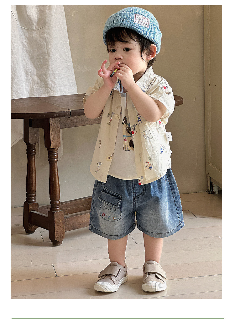 소년 셔츠 여름 2025 새로운 잘 생긴 아기 카디건 셔츠 티셔츠 아기 데님 반바지 얇은 카테고리 A스토어 가기