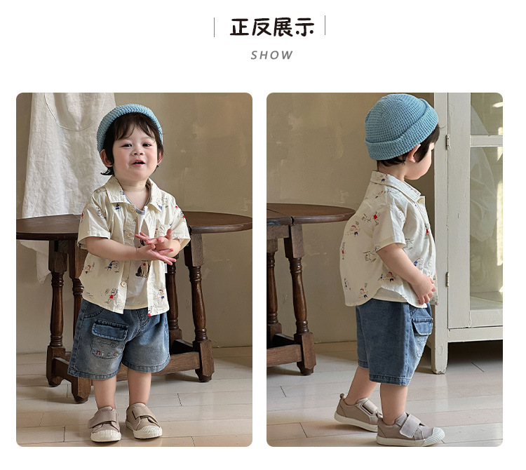 소년 셔츠 여름 2025 새로운 잘 생긴 아기 카디건 셔츠 티셔츠 아기 데님 반바지 얇은 카테고리 A