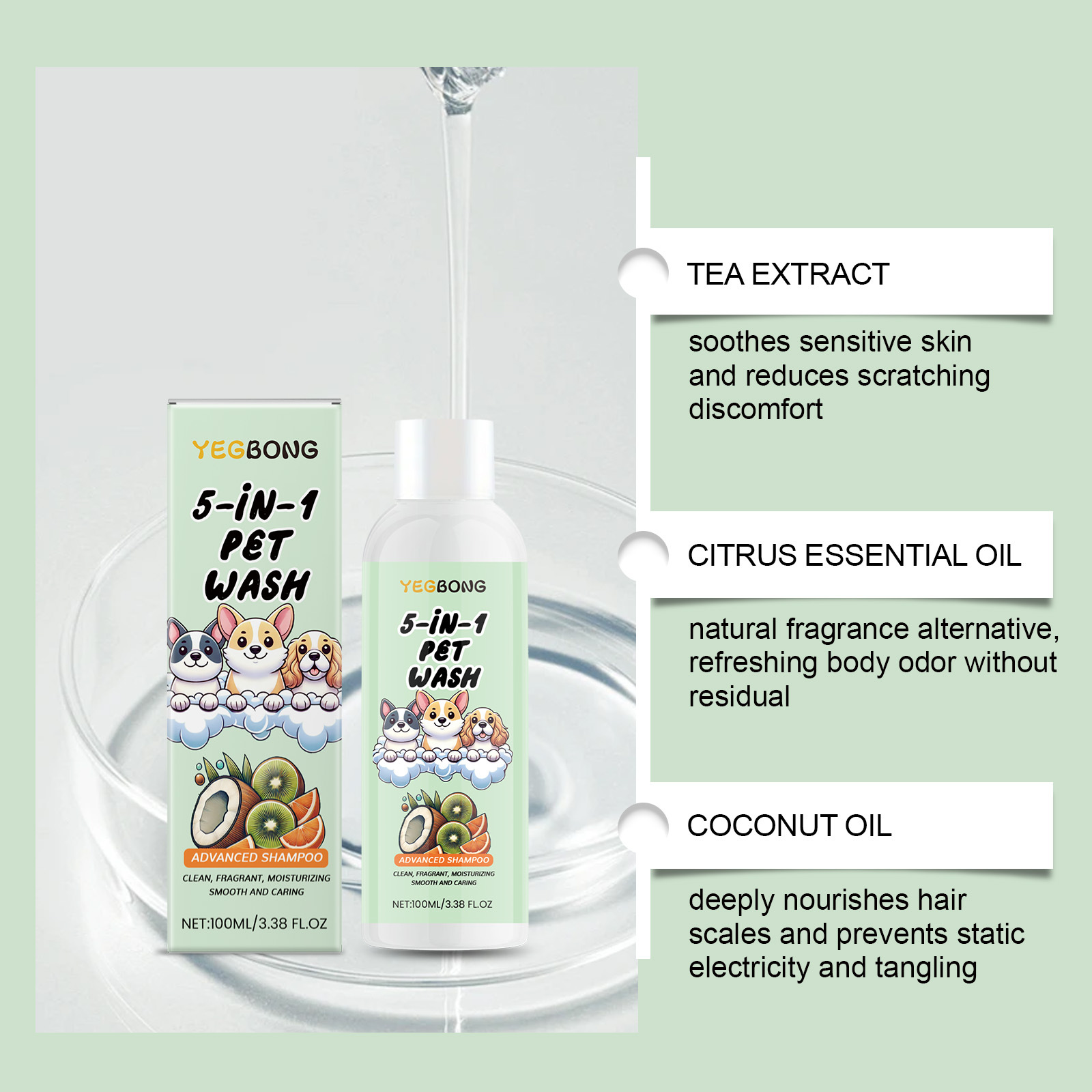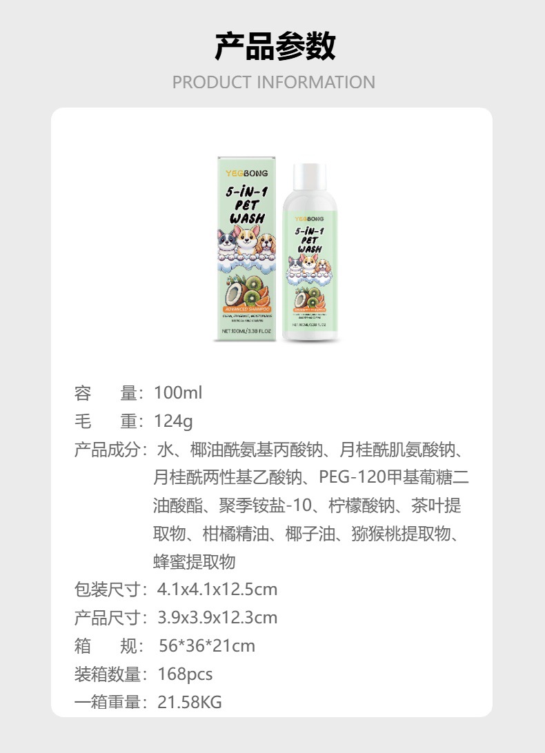 YEGBONG 애완 동물 샴푸 5 대 1 케어 플랜트 에센스 영양 안티 매듭 손질 개와 고양이