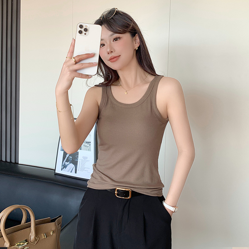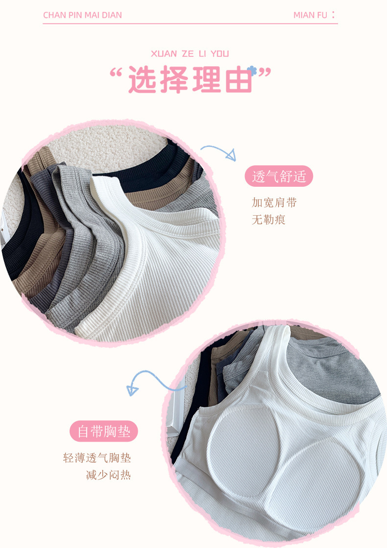 2025 내복 및 외복을위한 흉부 패드 스레드 카미 솔 조끼가있는 새로운 착용없는 브래지어 여성용 여름 얇은 슬림-핏 보투 탑스토어 가기