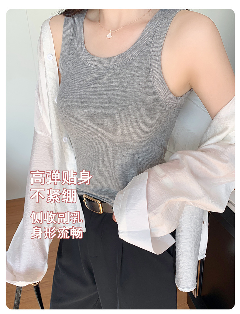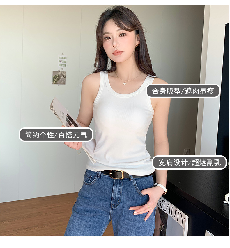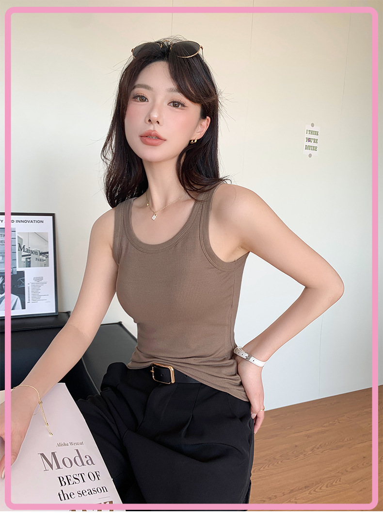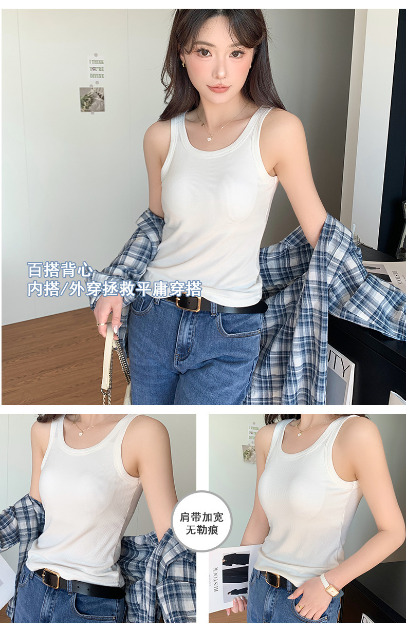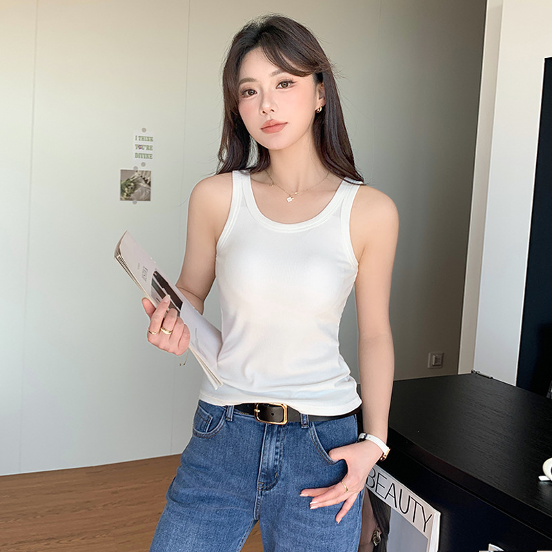 2025 내복 및 외복을위한 흉부 패드 스레드 카미 솔 조끼가있는 새로운 착용없는 브래지어 여성용 여름 얇은 슬림-핏 보투 탑
