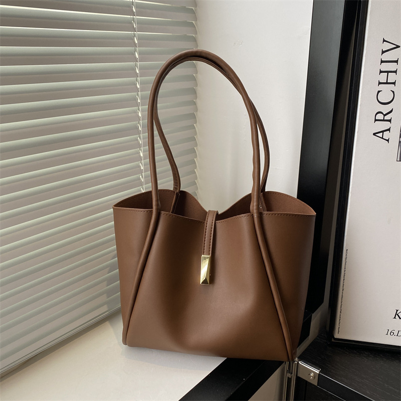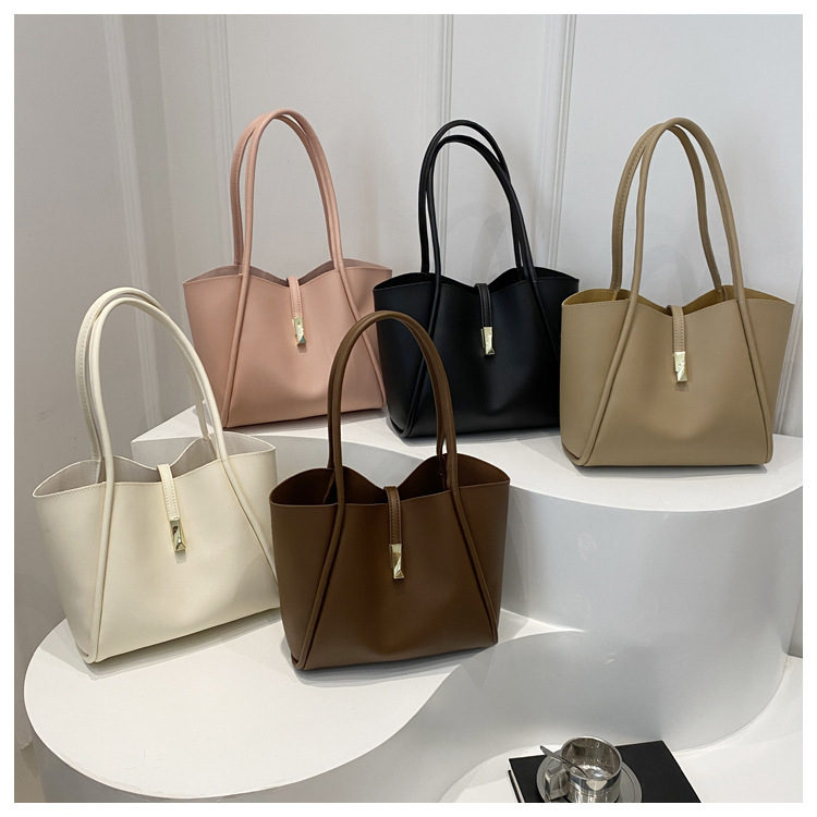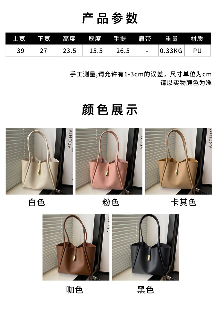 2024 새로운 한국어 스타일 솔리드 컬러 여성 가방 간단한 패션 핸드 헬드 토트 백 대용량 봄 패션 숄더 백