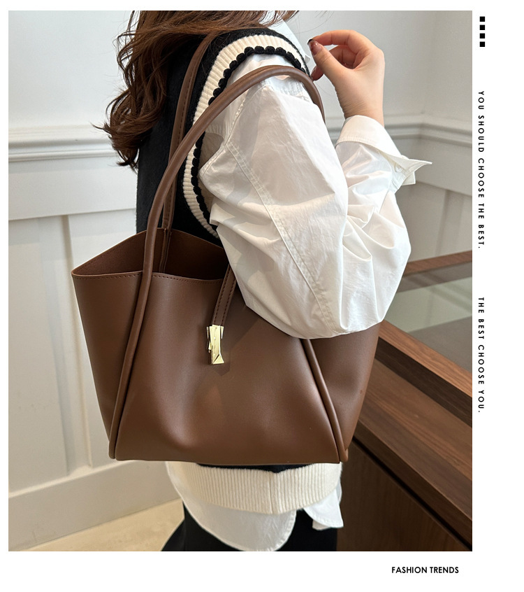 2024 새로운 한국어 스타일 솔리드 컬러 여성 가방 간단한 패션 핸드 헬드 토트 백 대용량 봄 패션 숄더 백스토어 가기
