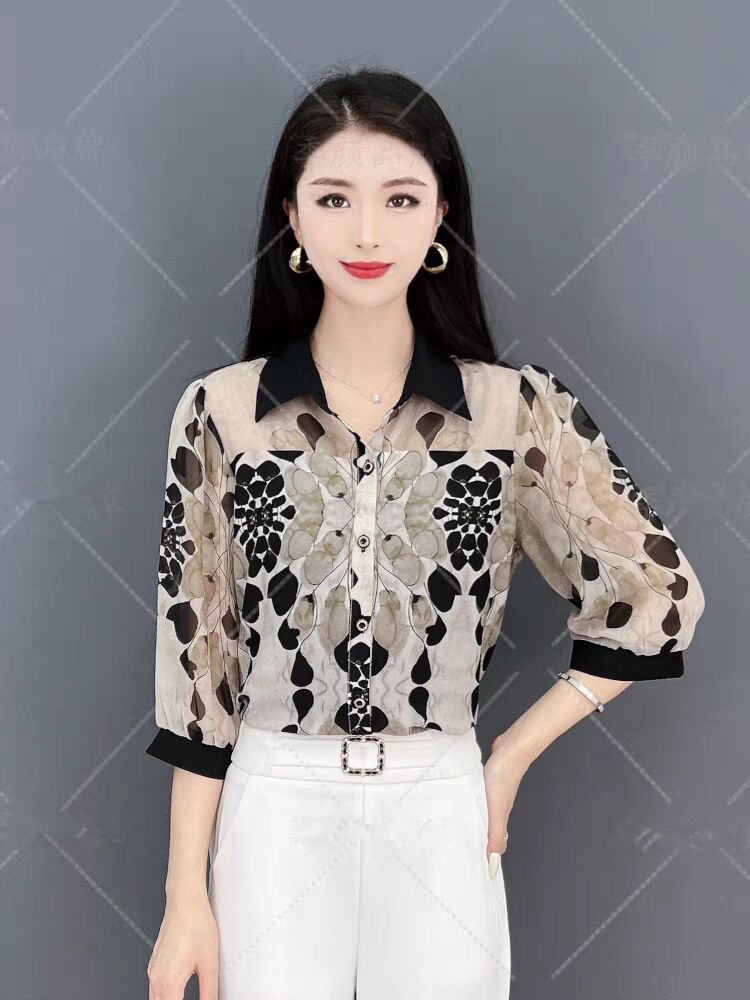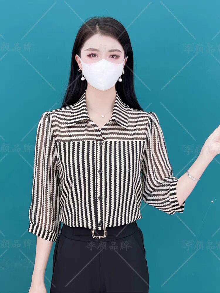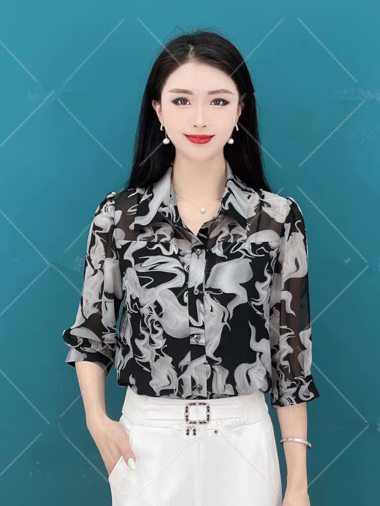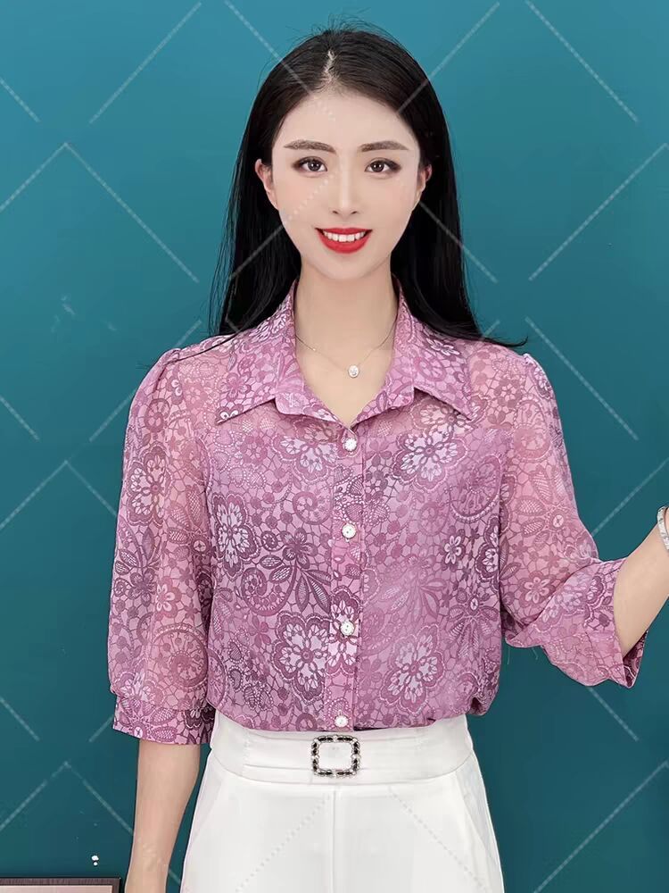 여름 착용 얇은 자른 소매 쉬폰 셔츠 통통녀 플러스 사이즈 슬리밍 아이스 실크 선 스크린 카디건 소매 여성용 탑
