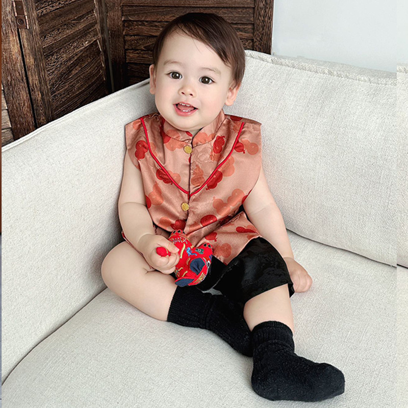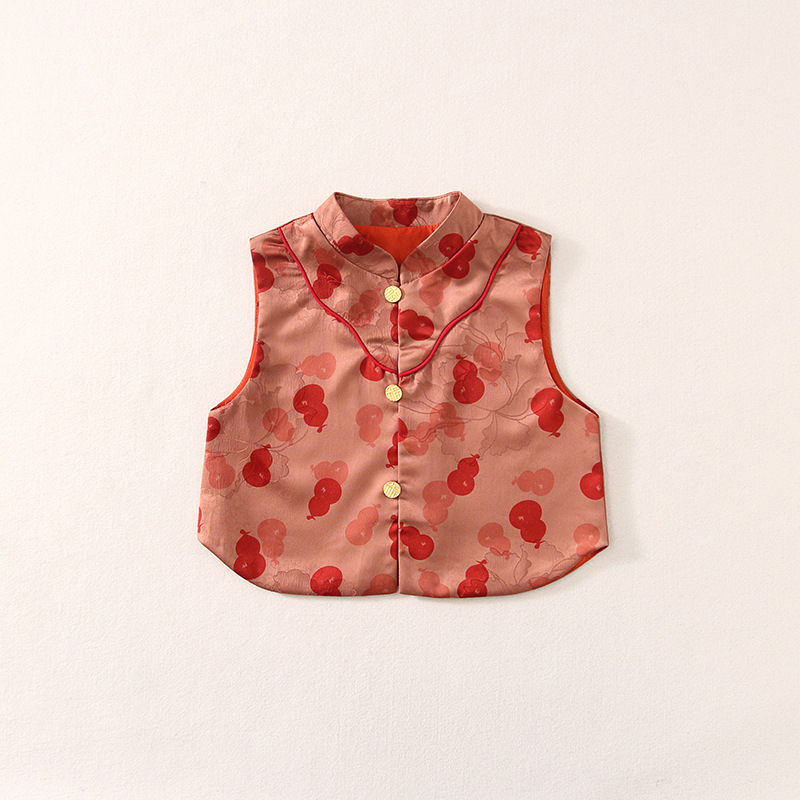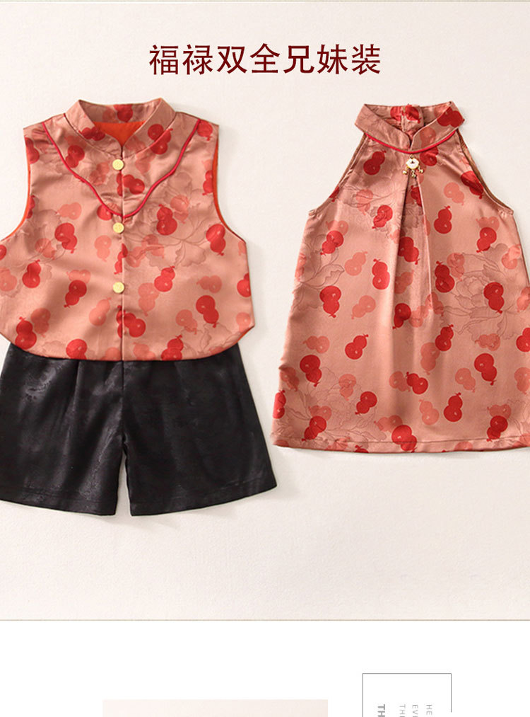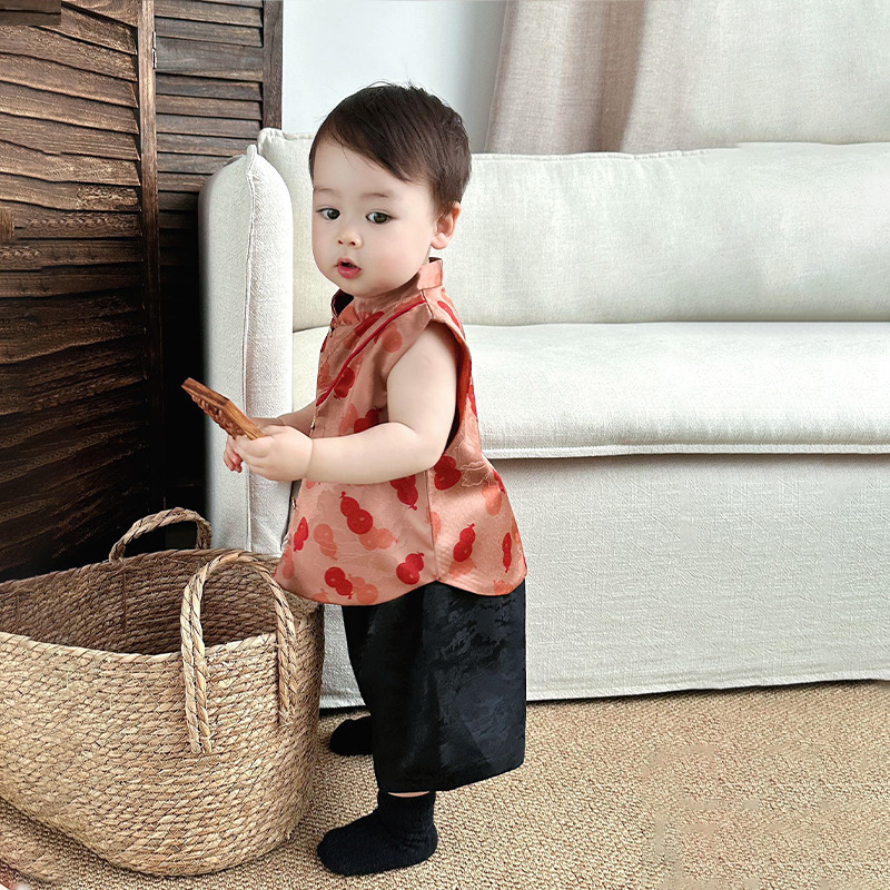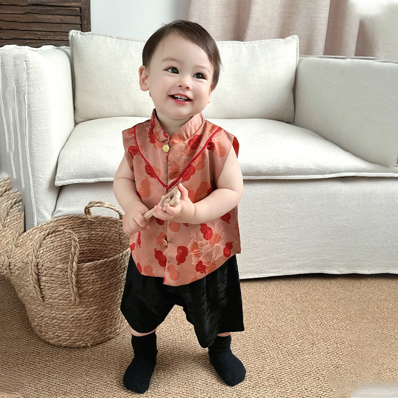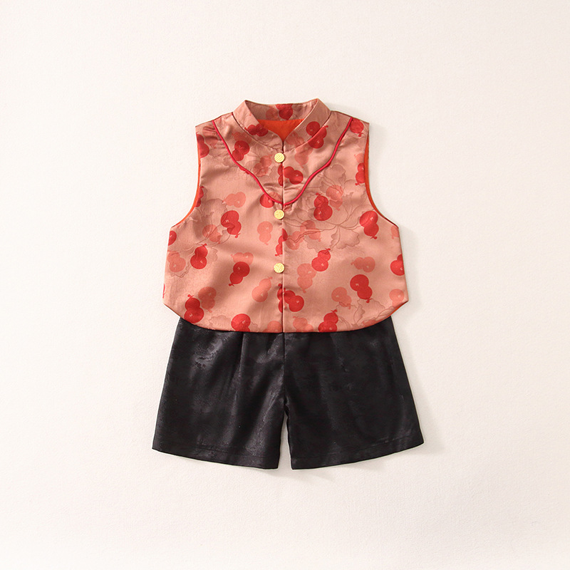 한푸 소년 세트 2025 년 여름 새로운 중국 Folu Gourd 조끼 국가 스타일 싱글 브레스트 수직 칼라 조끼스토어 가기