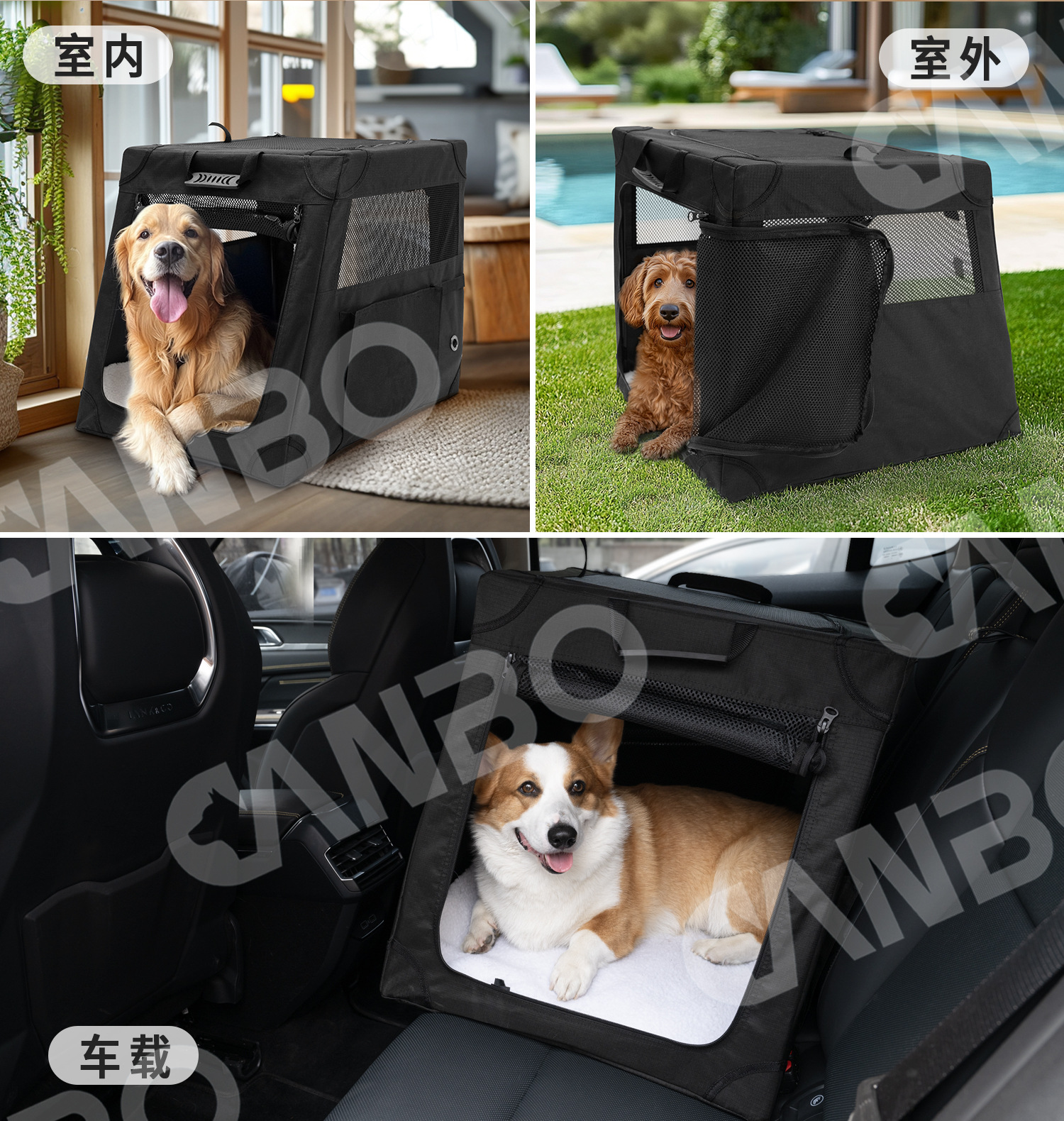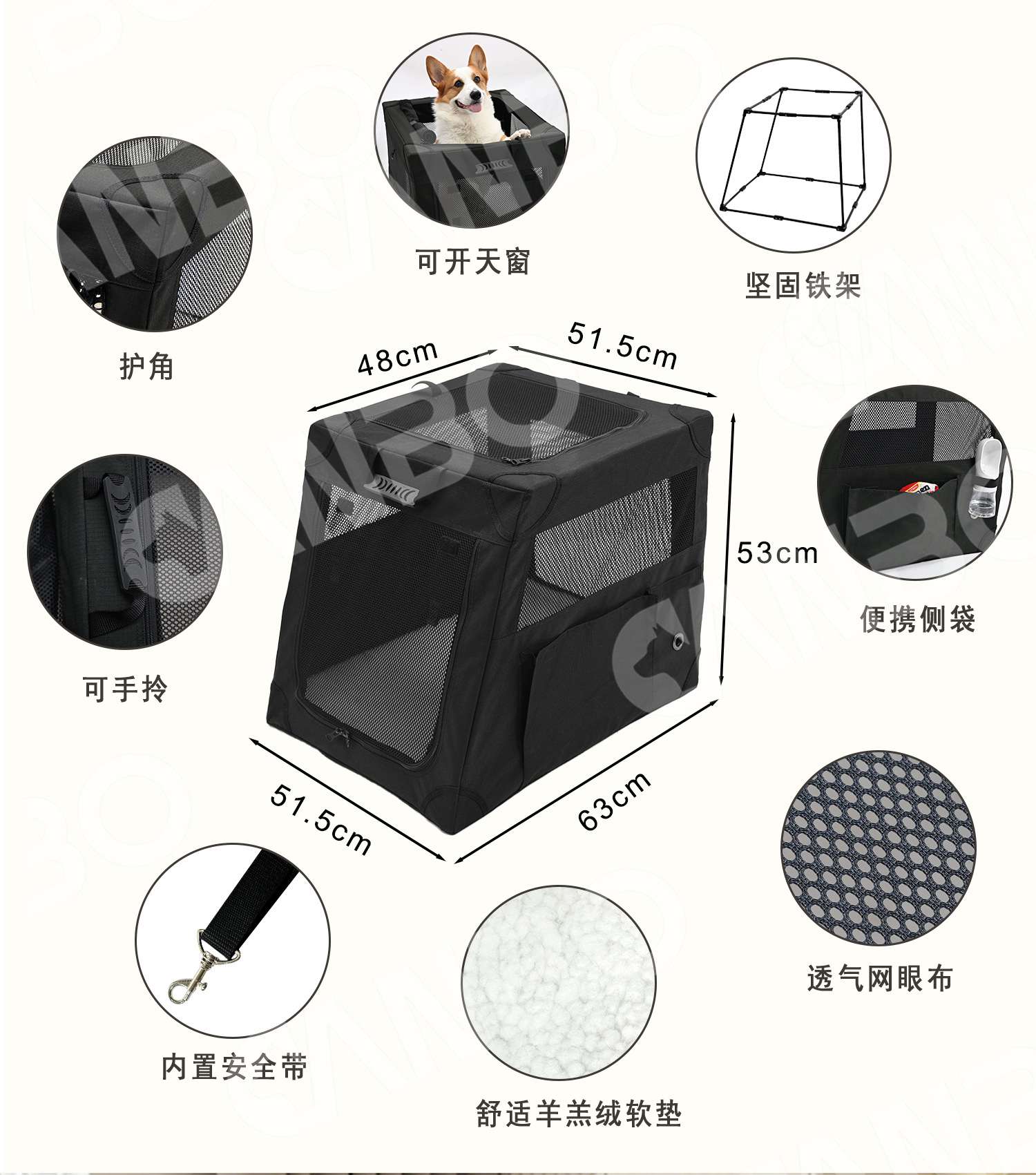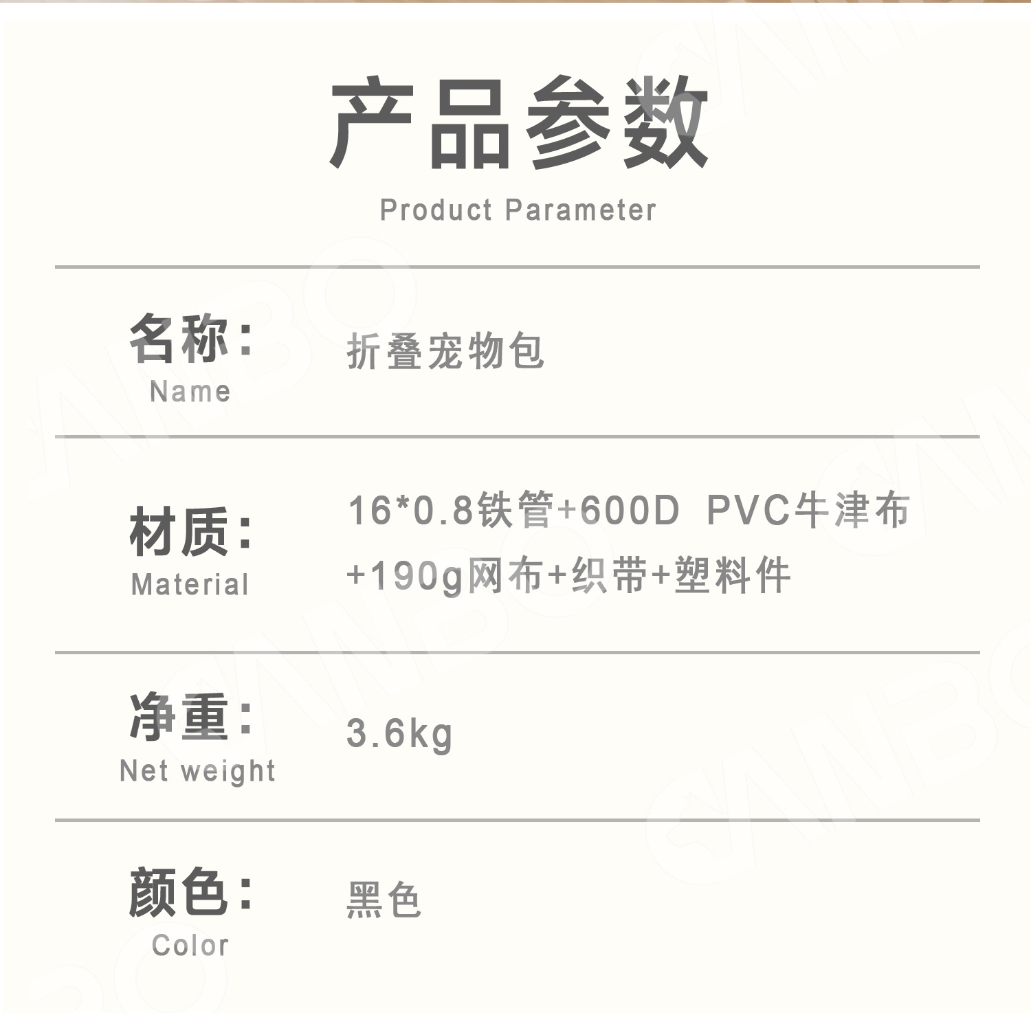 2.面辅料:600D牛津布PVC+190g网布+织带+塑料件+毛绒垫