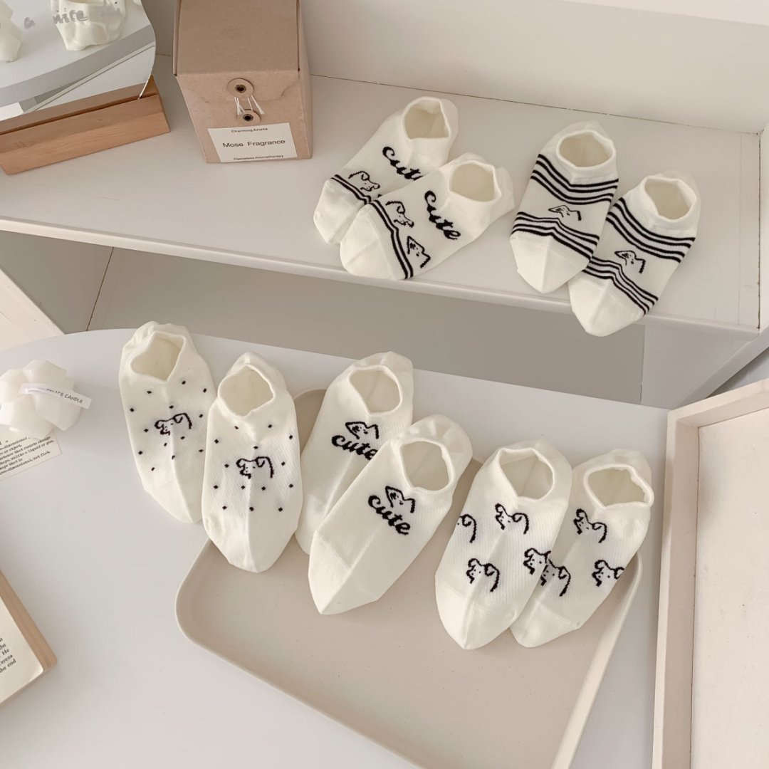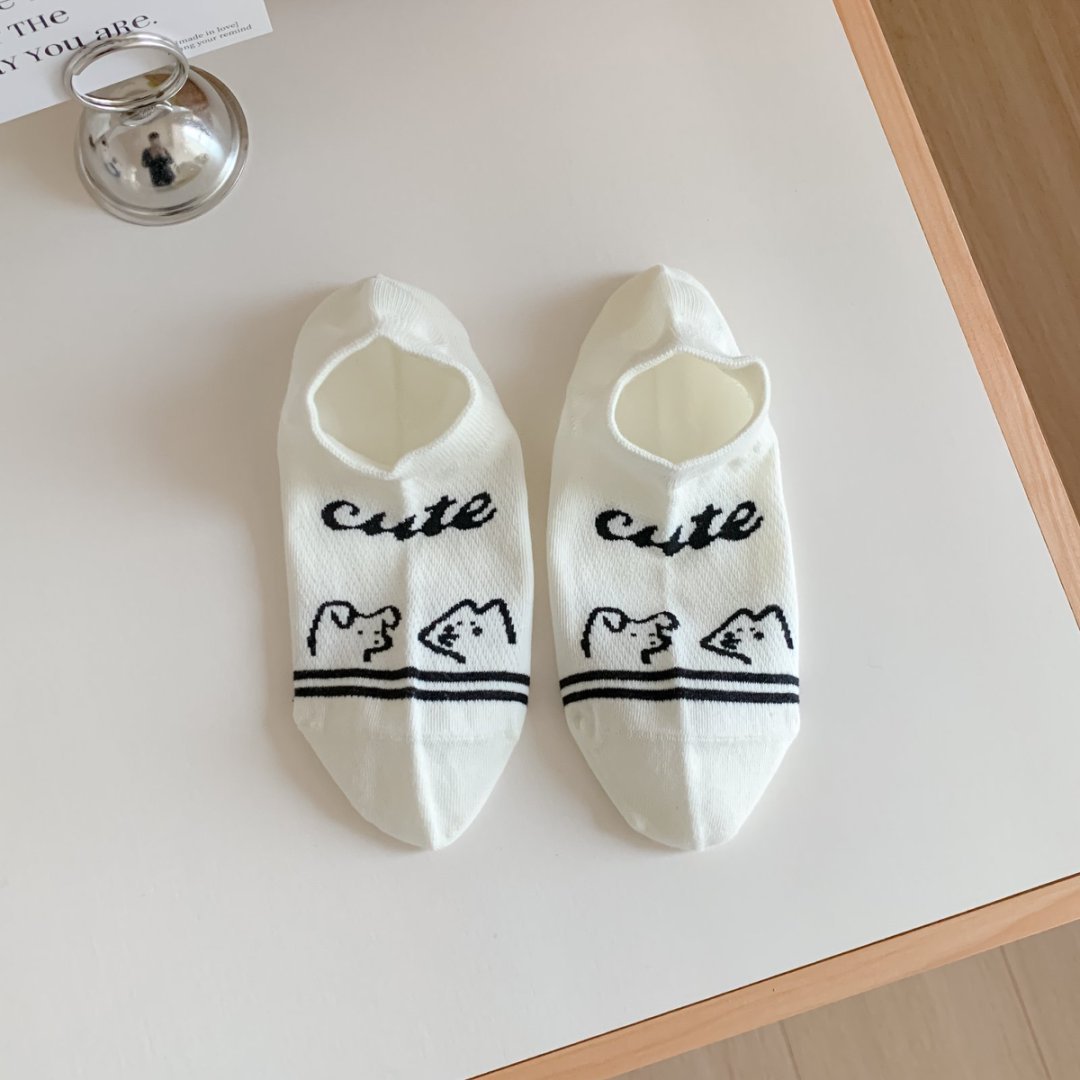 보이지 않는 양말 흑백 개 여름 메쉬 보트 양말 통기성 Ins 유행 Zhuji Hosiery 만화 귀여운 얇은 양말스토어 가기