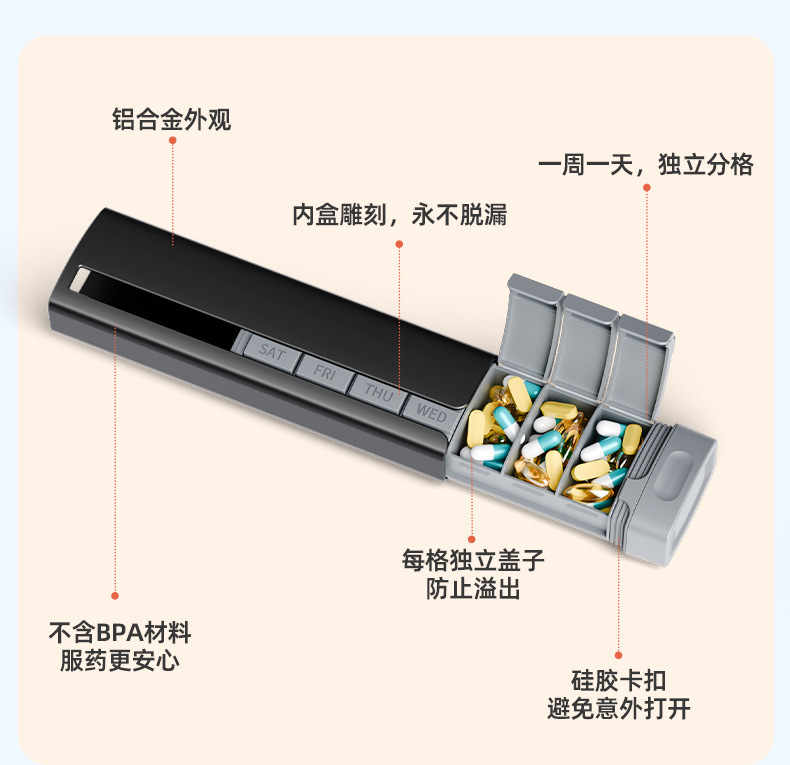 국경 간 폭발 편리한 약 상자 하위 포장 식품 등급 PP 재료 약 상자 7 상자 밀봉 태블릿 미니 저장 상자스토어 가기