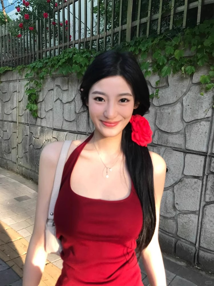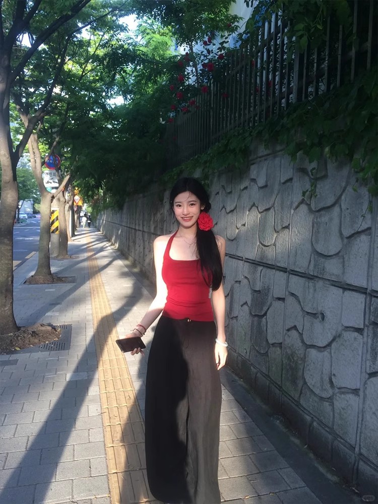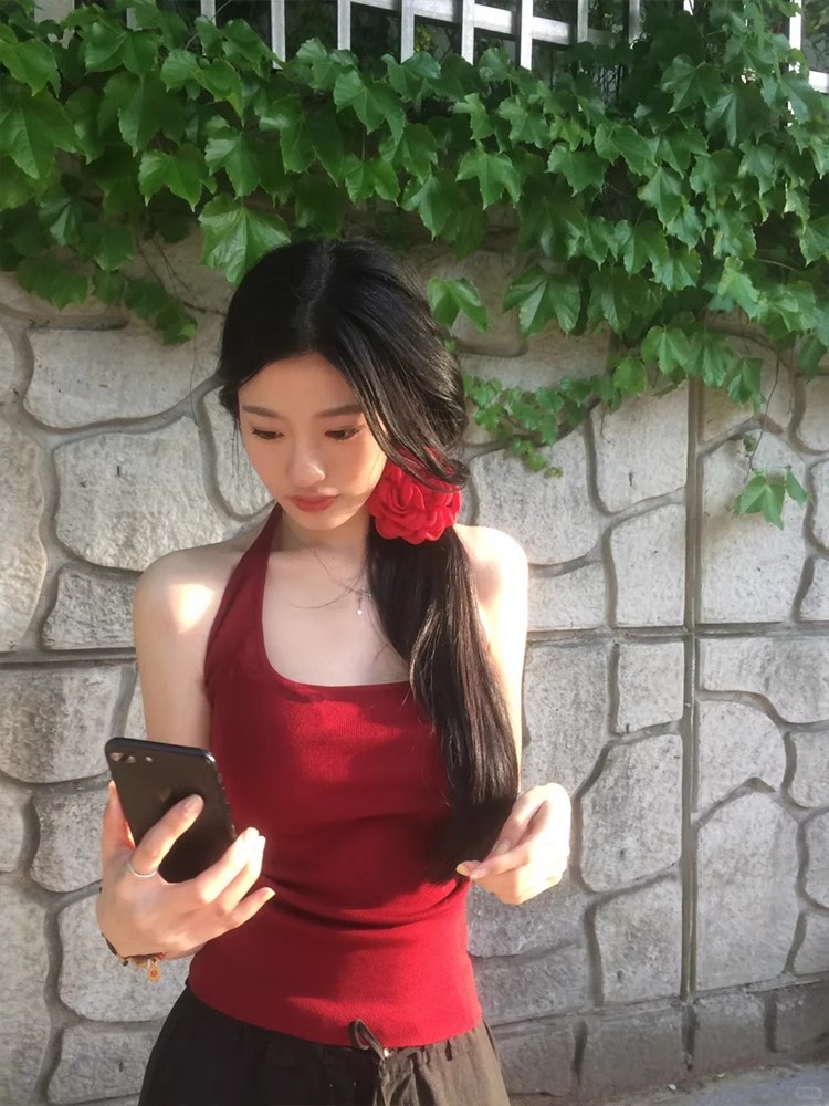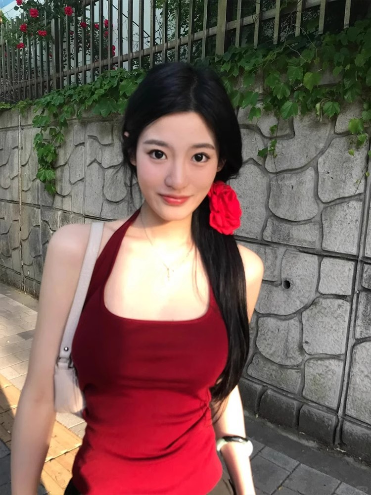 뜨거운 소녀 순수한 욕망 스타일 Halter Camisole 여성의 2025 여름 새로운 슬림 핏 슬리밍 U-칼라 솔리드 컬러 탑스토어 가기