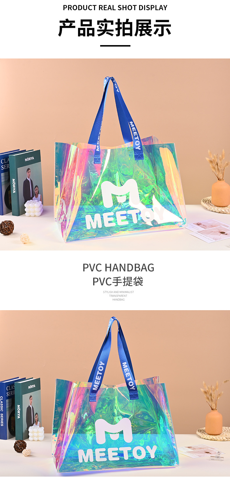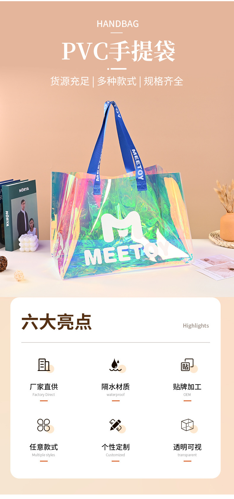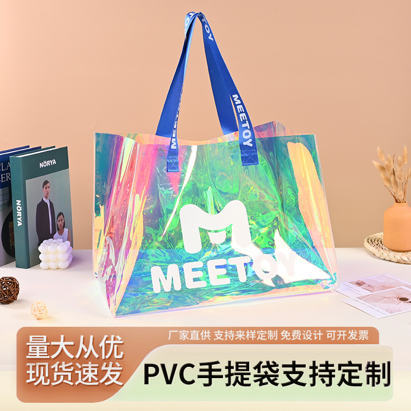 레이저 가방 맞춤형 로고 다채로운 pvc 토트 백 광고 젤리 가방 투명 플라스틱 선물 가방 맞춤형