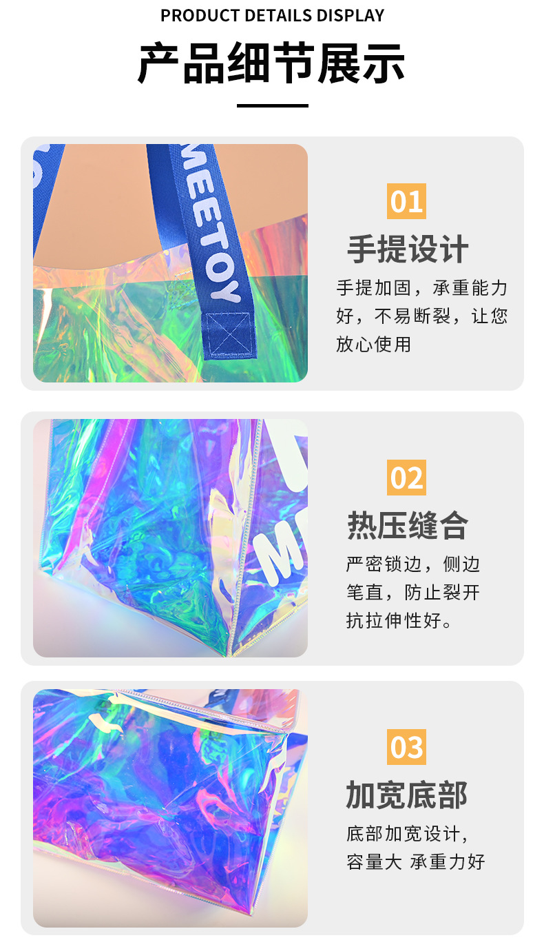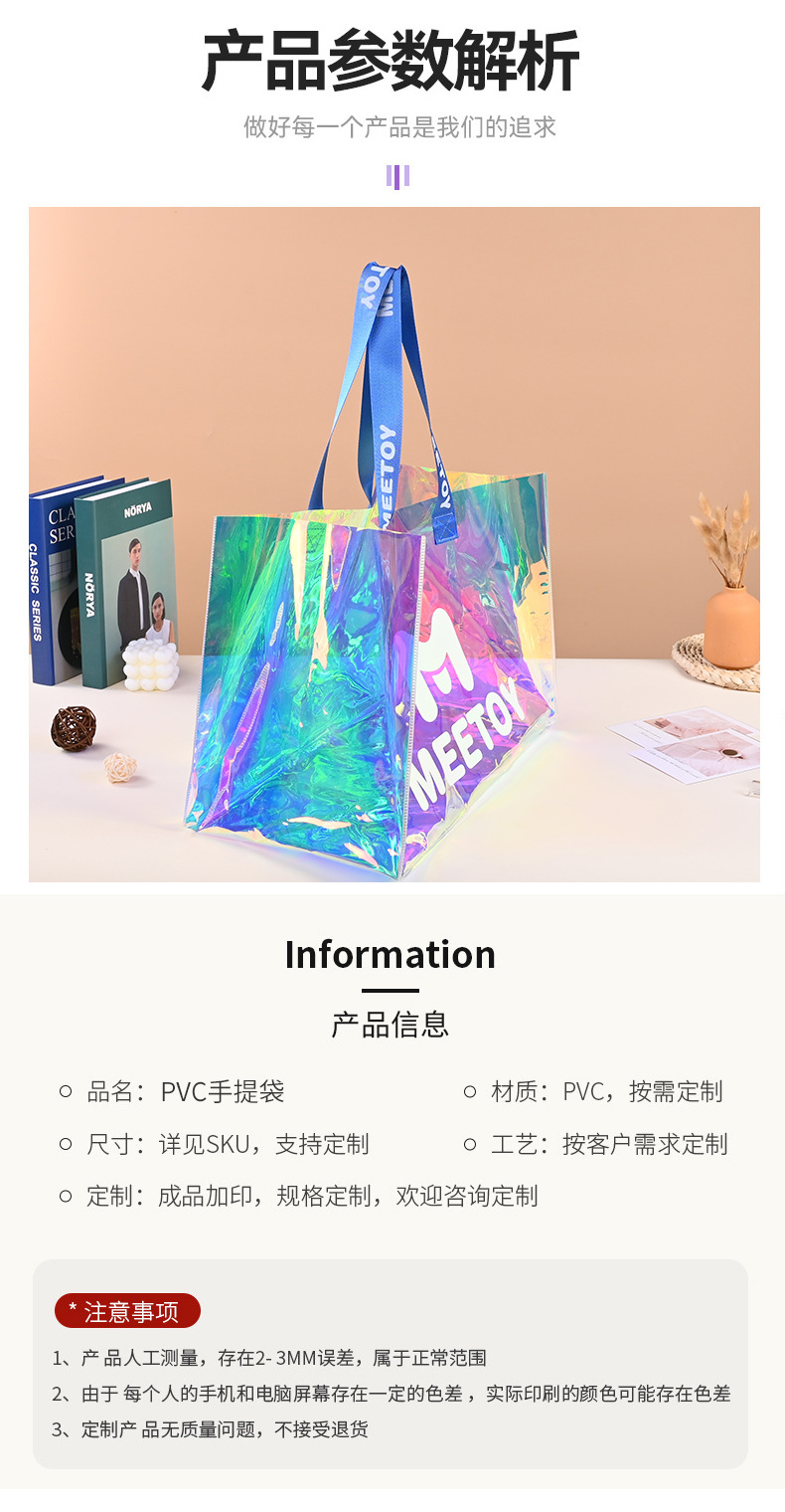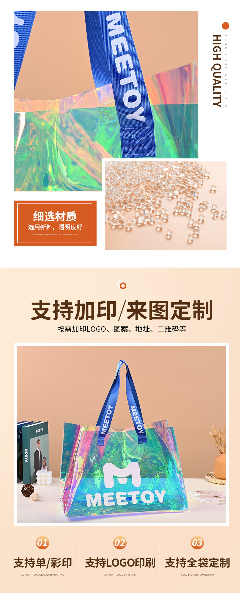 레이저 가방 맞춤형 로고 다채로운 pvc 토트 백 광고 젤리 가방 투명 플라스틱 선물 가방 맞춤형