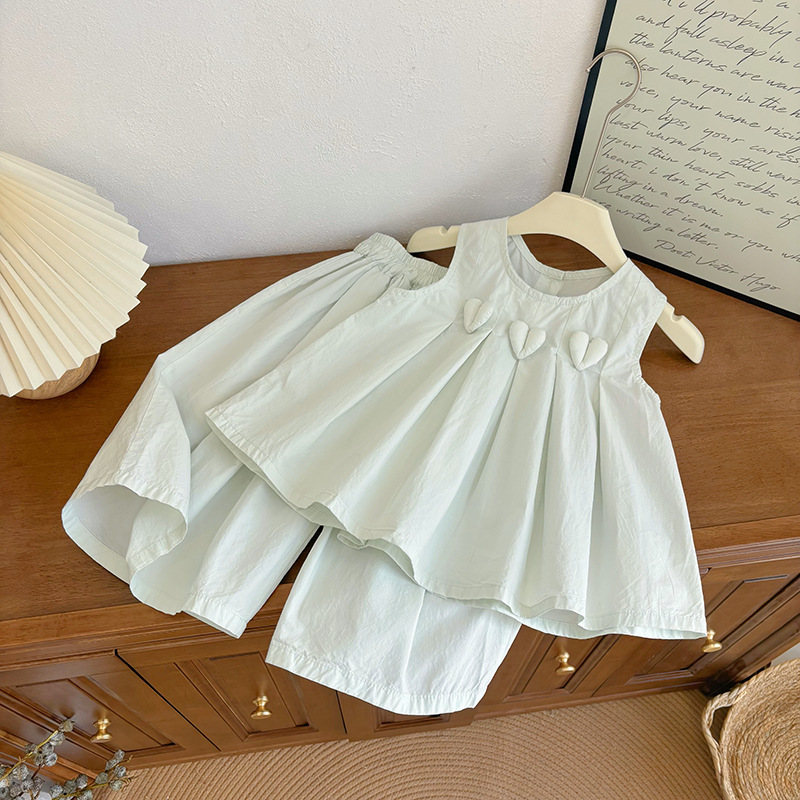 소녀 여름 새로운 세련된 민소매 탑 얇은 바지 여름 소녀 아기 유행 세련된 세트 트렌디스토어 가기