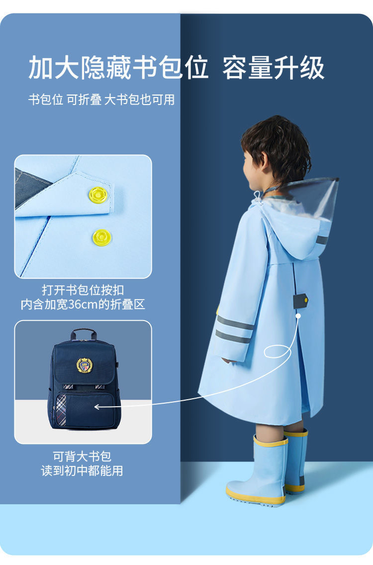 남아, 여아, 초등학생을 위한 아동용 비옷, 책가방, 학교복, 중대형 아동복, 비바람 방지 판초