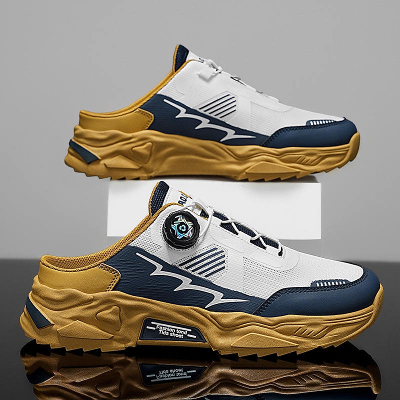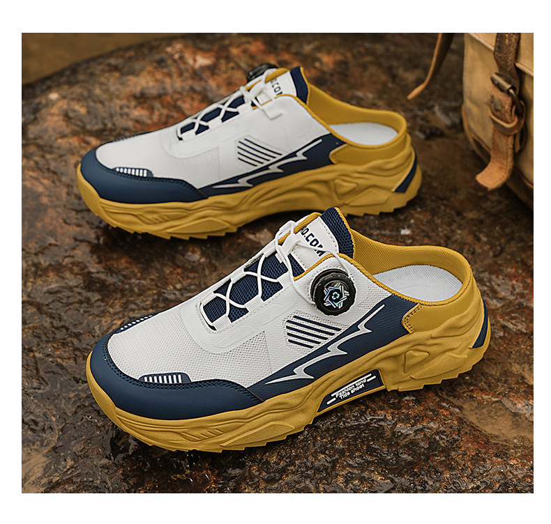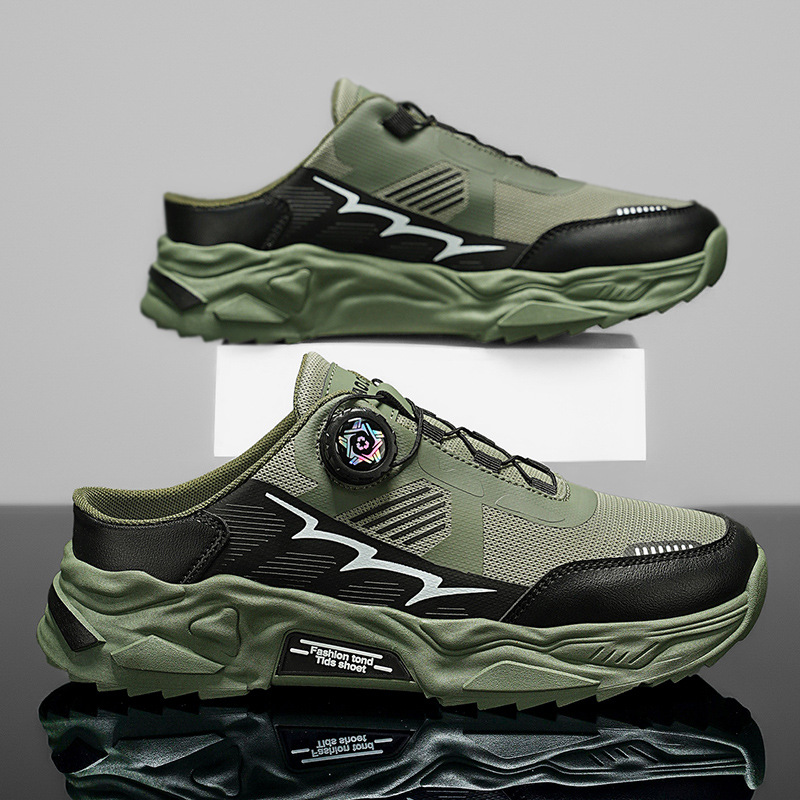 2025 여름 새 스타일 메쉬 통기성 운동화 한국 스타일 하프 지원 트렌디 남성 신발 두꺼운 유일한 미끄럼 캐주얼 러닝 슈즈스토어 가기