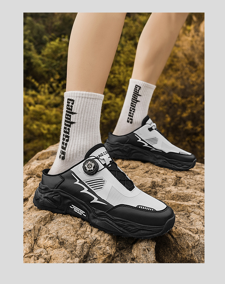 2025 여름 새 스타일 메쉬 통기성 운동화 한국 스타일 하프 지원 트렌디 남성 신발 두꺼운 유일한 미끄럼 캐주얼 러닝 슈즈