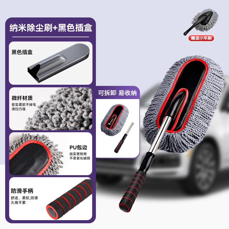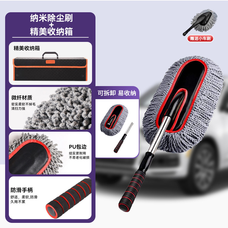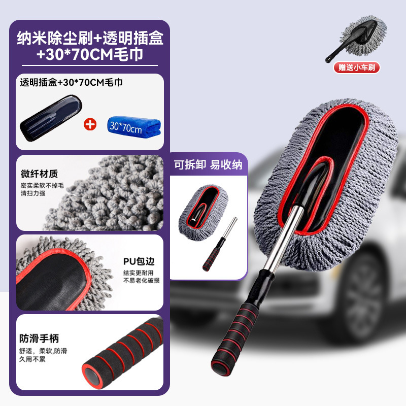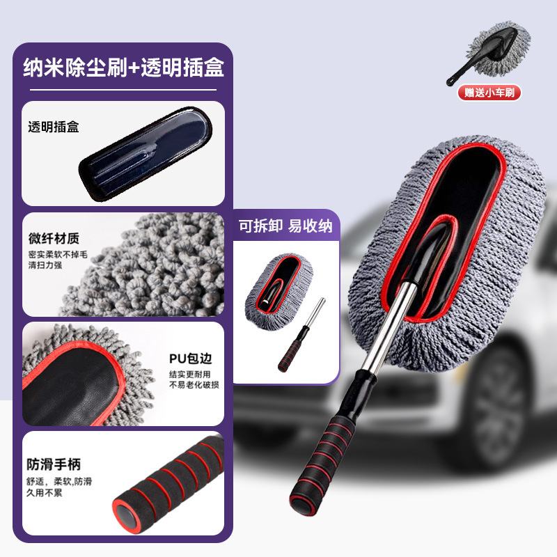 • [그레이 레드] 두꺼워진 나노 먼지떨이 [투명 삽입 상자 + 30*70CM 수건 + 소형 자동차 브러시]