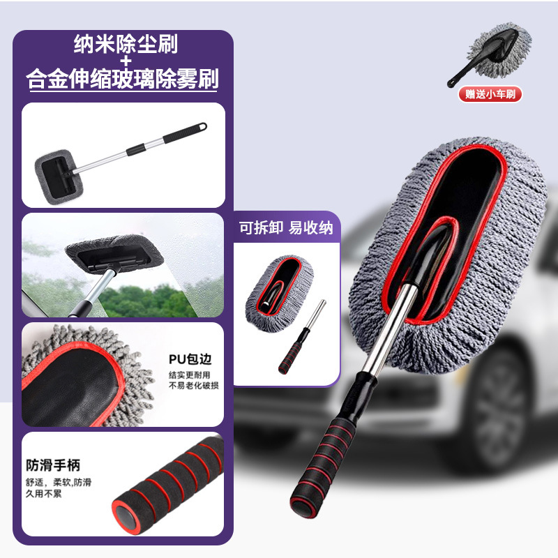 • [김서림 제거 및 먼지 제거 세트] 합금 텔레스코픽 유리 김서림 제거 브러시 + 두꺼운 나노 먼지 살포기