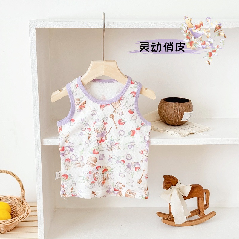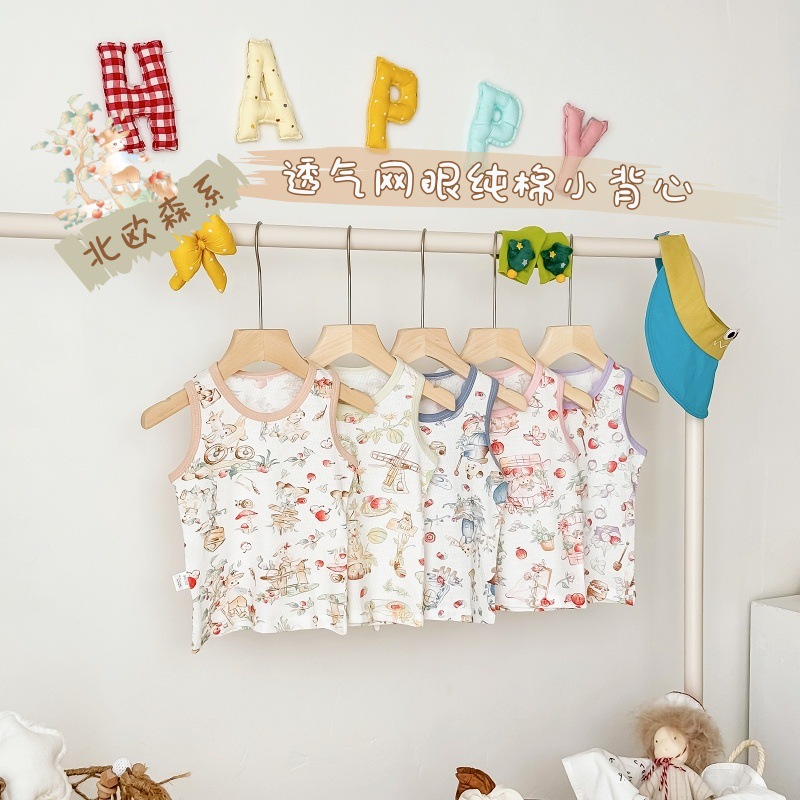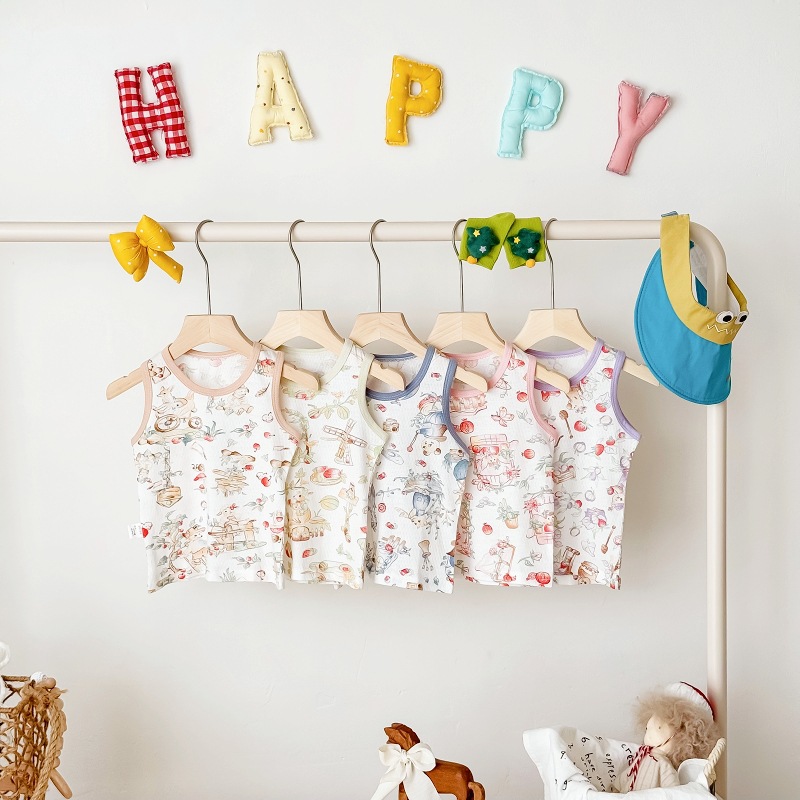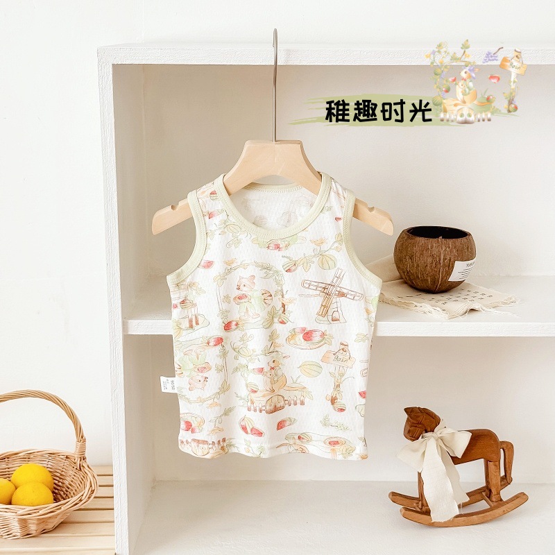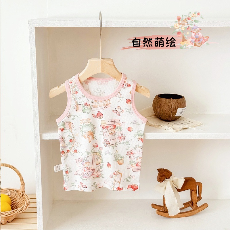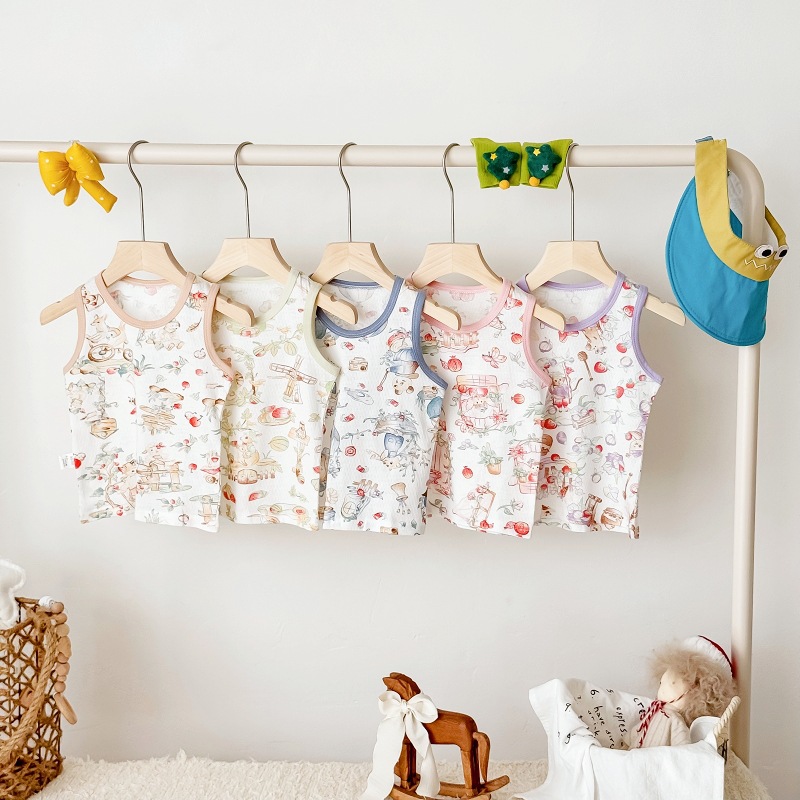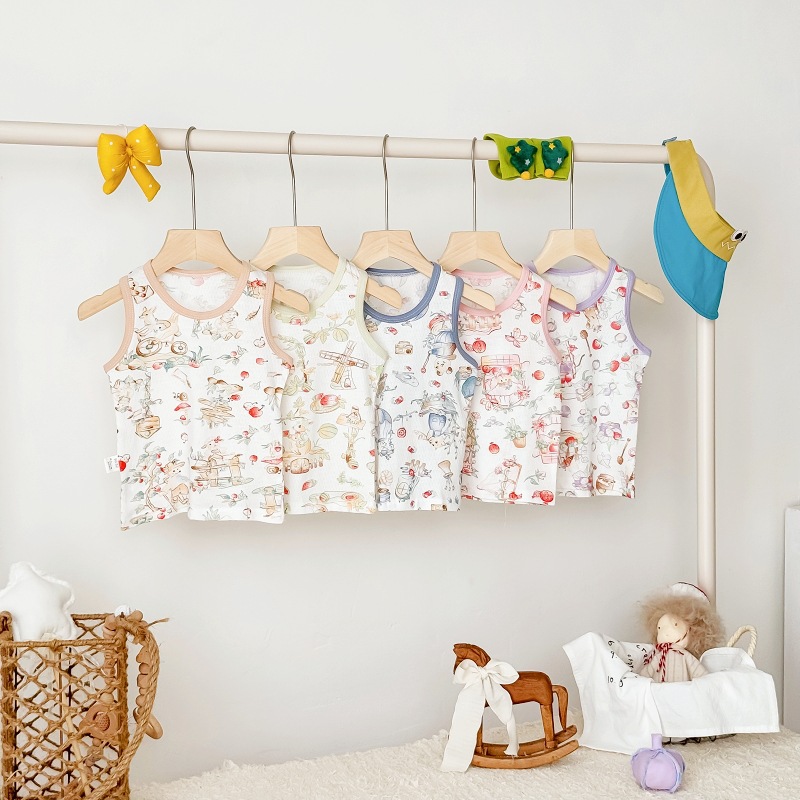 아동용 조끼 여름 얇은 남성 및 여성 아동복 아기 겉옷 아기 순면 민소매 배꼽 보호 싱글 탑스토어 가기
