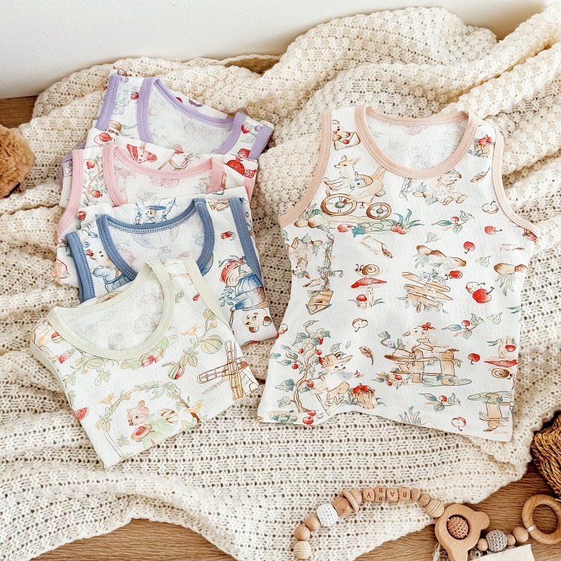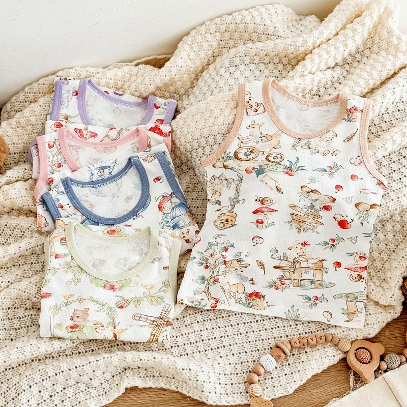 아동용 조끼 여름 얇은 남성 및 여성 아동복 아기 겉옷 아기 순면 민소매 배꼽 보호 싱글 탑