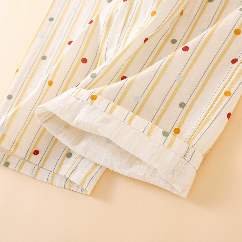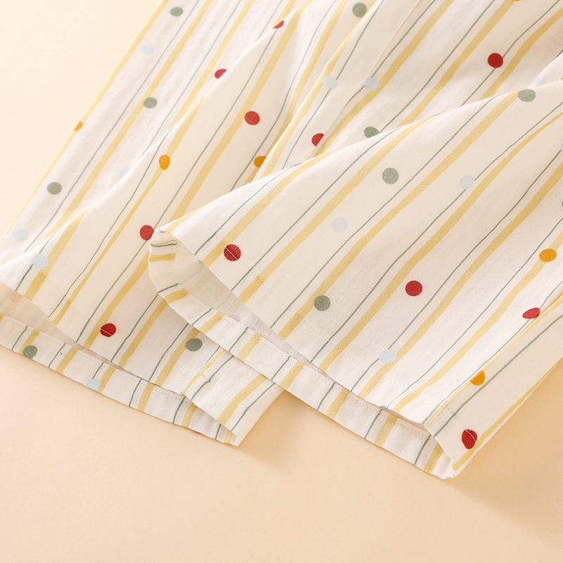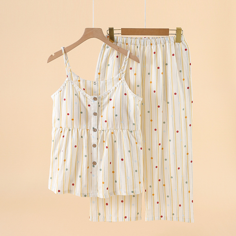 여성을위한 새로운 여름 순수 코튼 더블 레이어 거즈 가슴 패드 잠옷 얇은 달콤한 서스펜더 카프리 홈웨어 세트스토어 가기