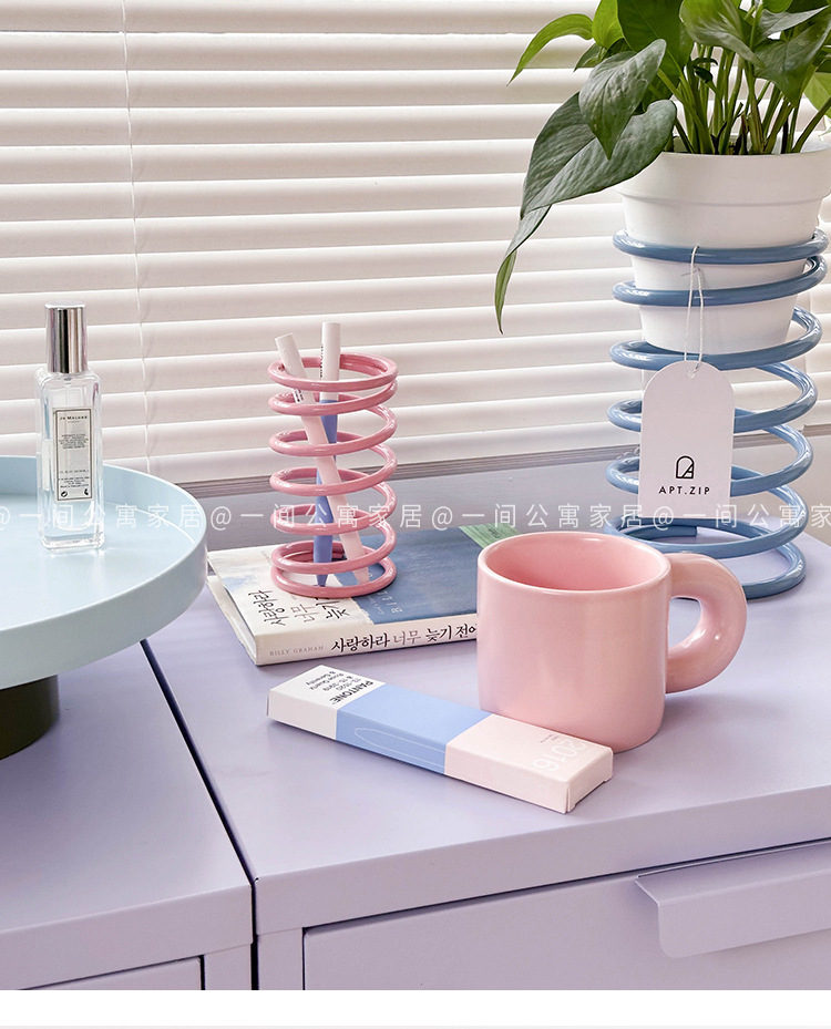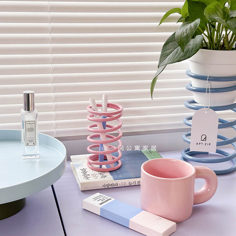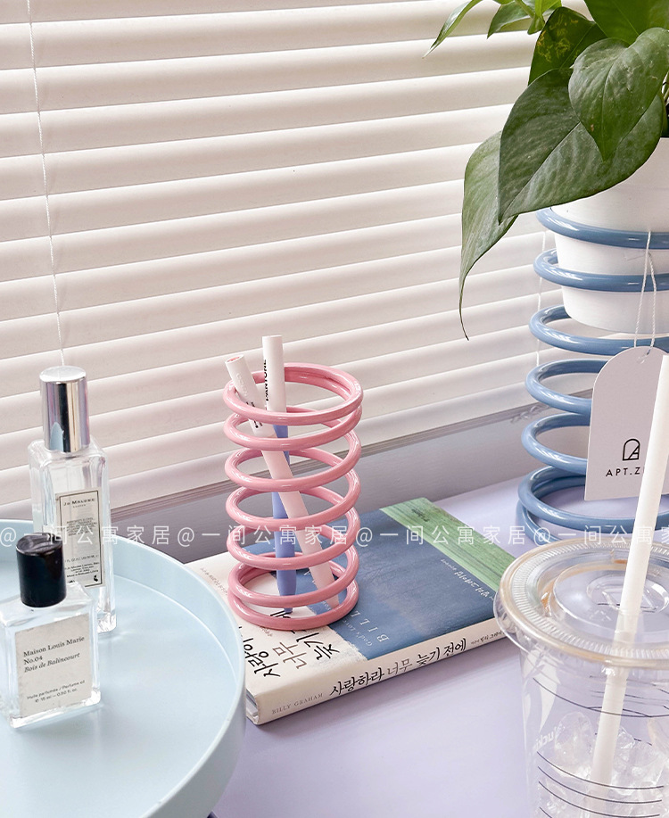 아파트 홈 한국어 ins 수제 스테인레스 스틸 나선형 스토리지 스프링 링 칫솔 홀더 문구 식기