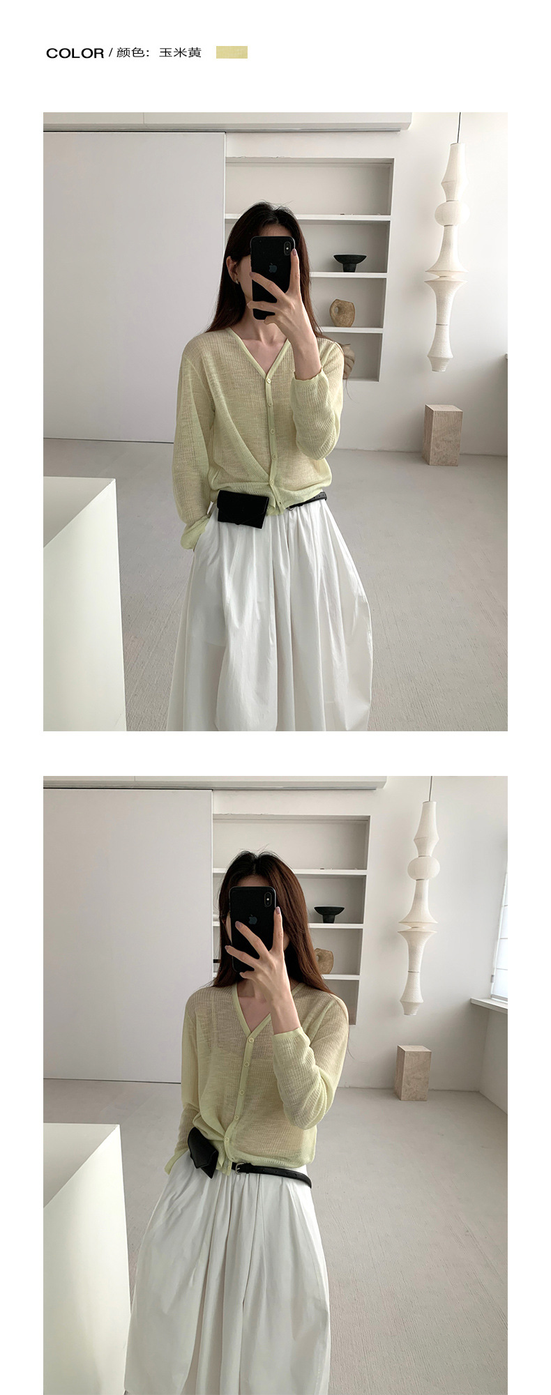 TG 니트 얇은 카디건 여자 2025 년 여름 새로운 한국식 V 넥 슬림 룩 클래식 솔리드 컬러 올 매치 톱 24789스토어 가기