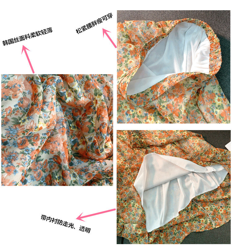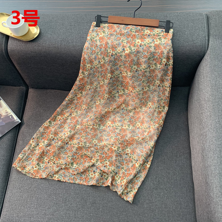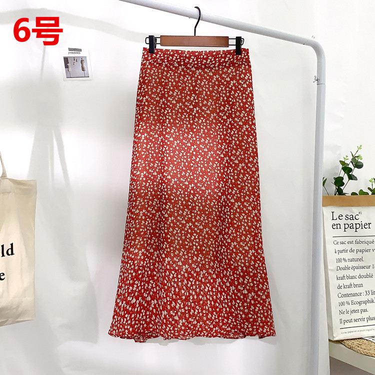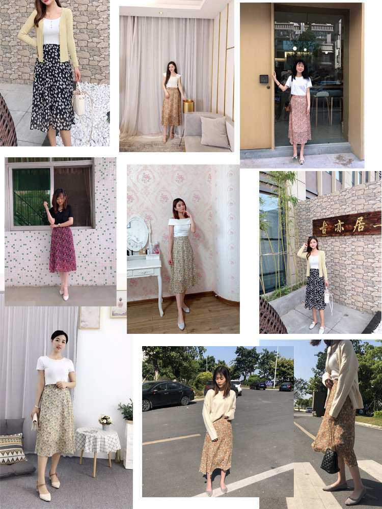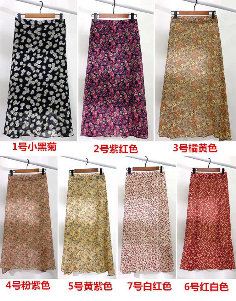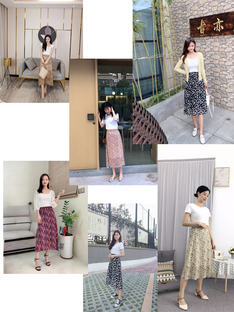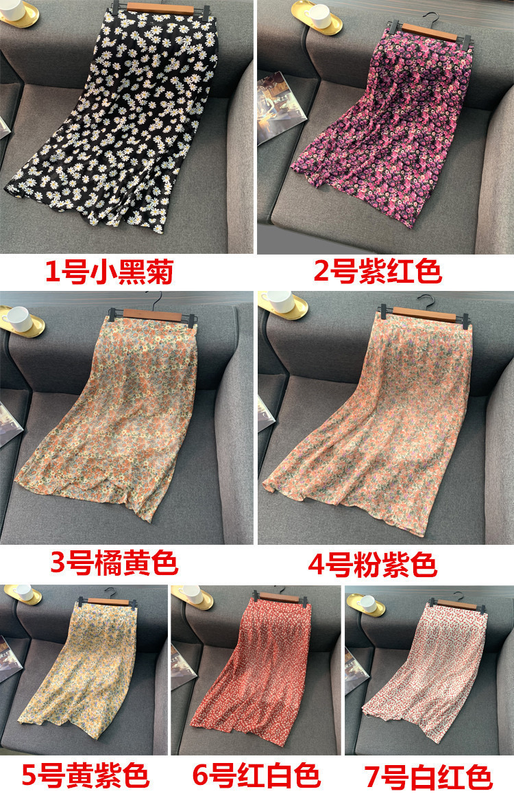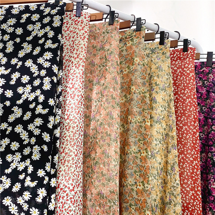 꽃 치마 여자 여름 2024 새로운 높은 허리 시폰 데이지 스커트 인쇄 중간 길이의 유두 긴 스커트스토어 가기