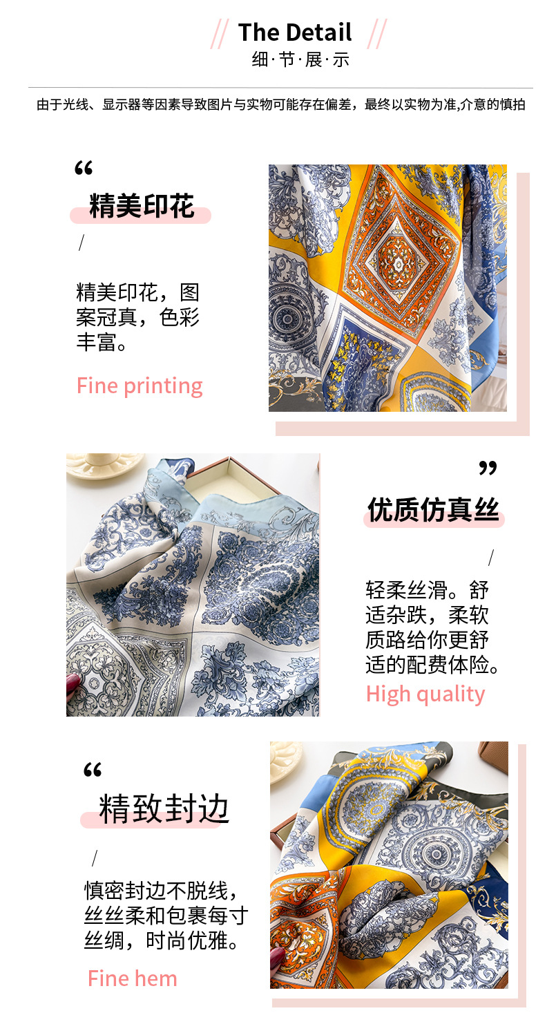유럽과 미국의 레트로 우아한 인쇄 실크 스카프 스퀘어 스카프 고급 목도리 모든 경기 목 작은 광장 스카프 여성 스카프스토어 가기