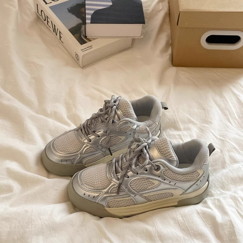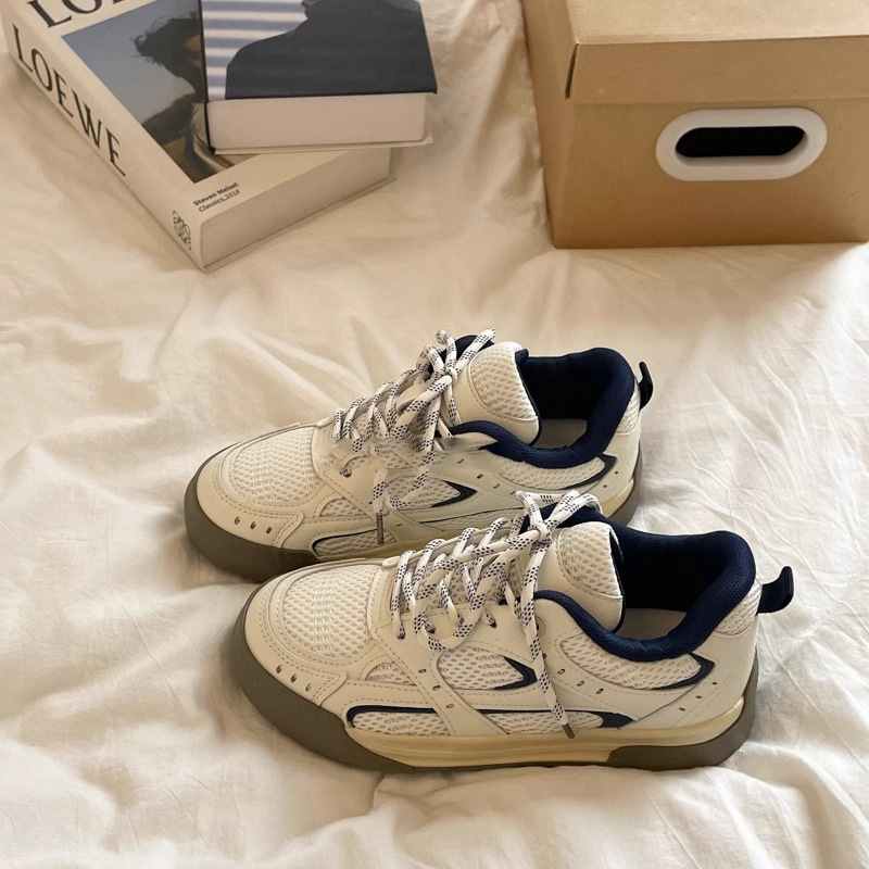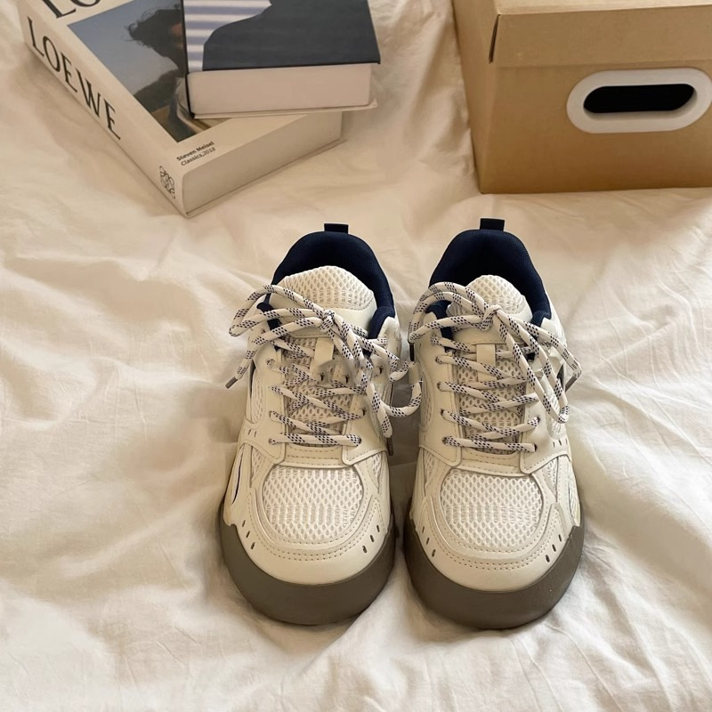 메쉬 통기성 흰색 신발 여성의 2025 봄 새로운 틈새 디자인 도덕 훈련 신발 다목적 스포츠 캐주얼 신발