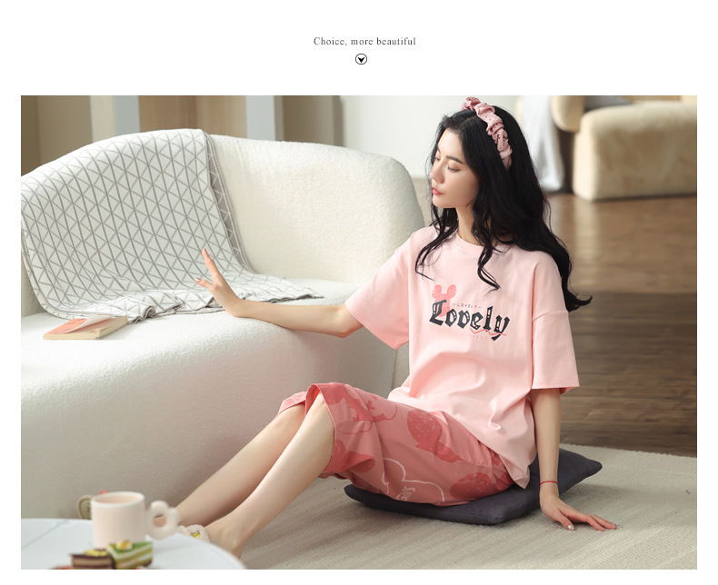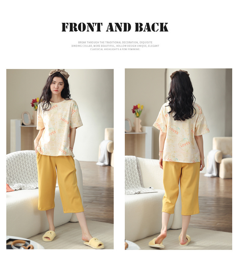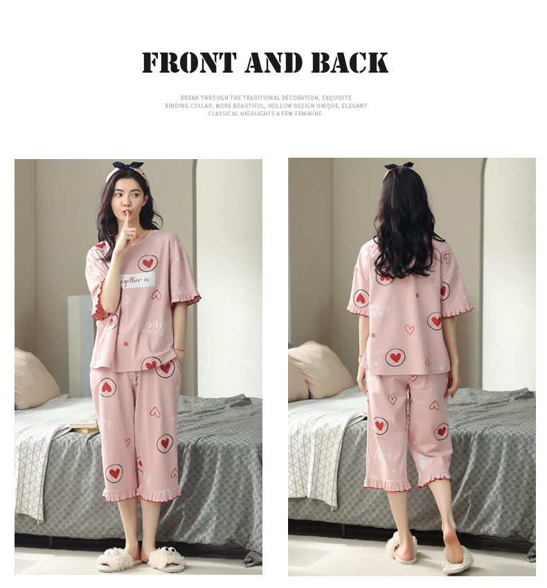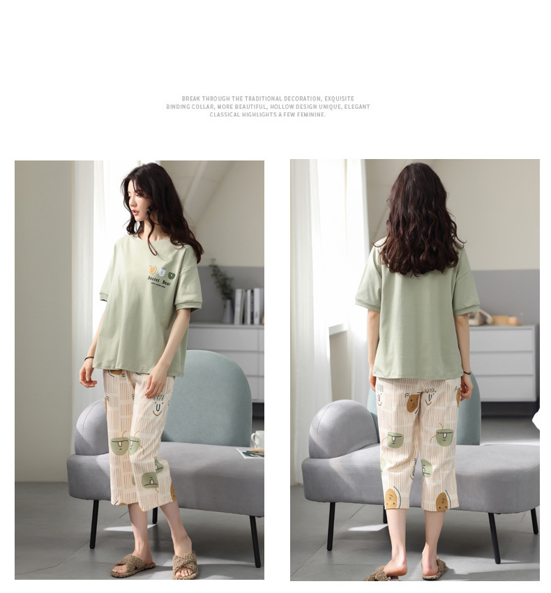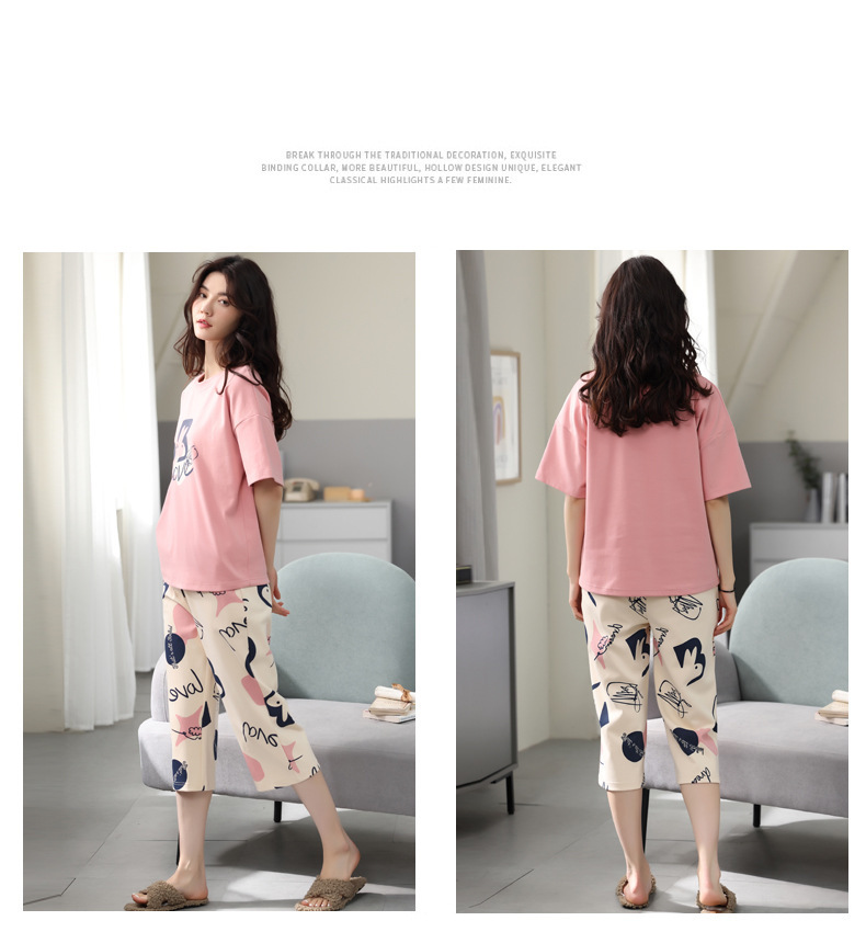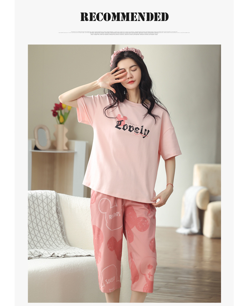 2025 여름 면화 잠옷 여성 반팔 달콤한 캐주얼 카프리 바지 여름 편안한 홈 의류 세트 31