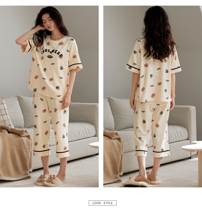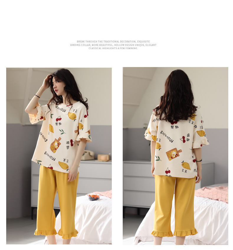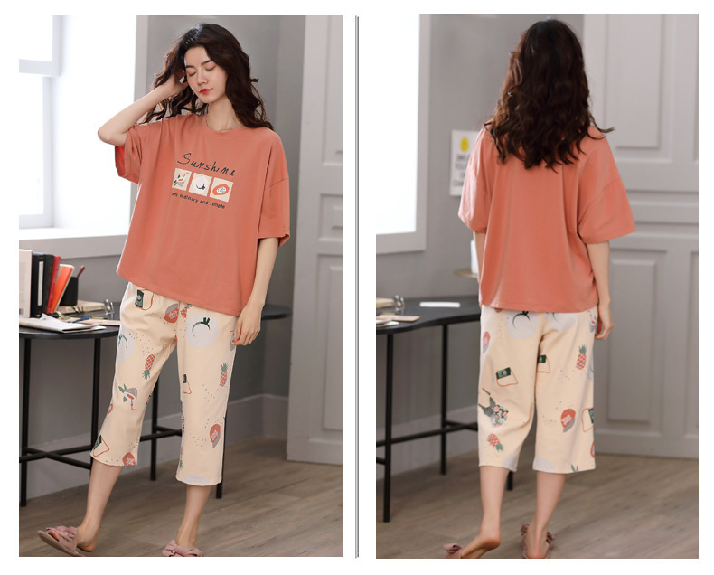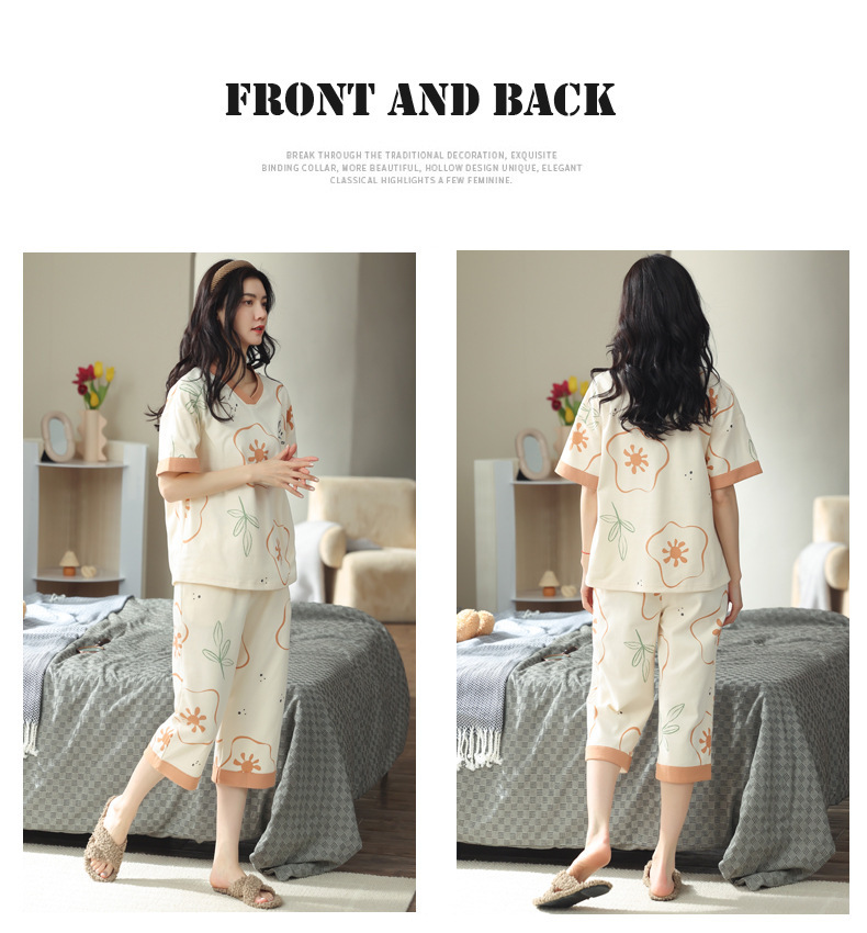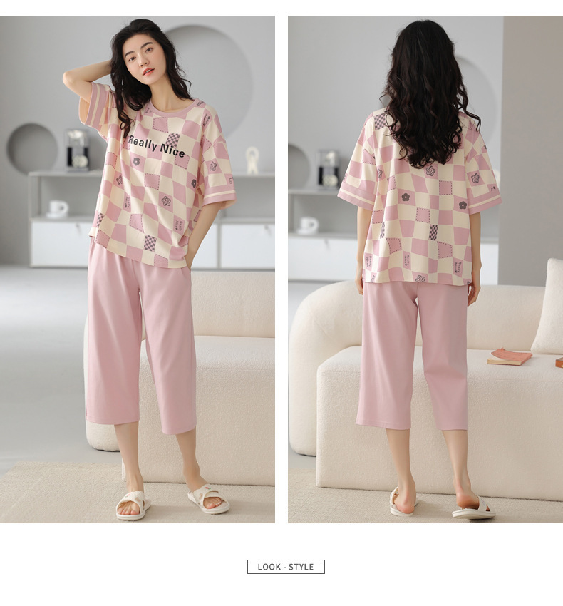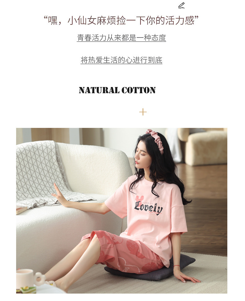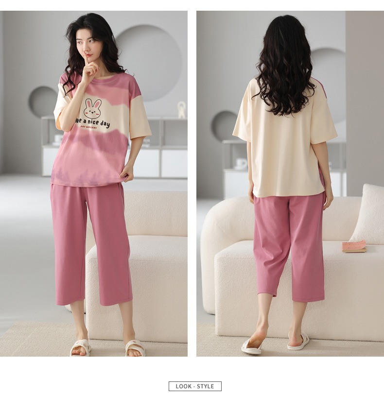 2025 여름 면화 잠옷 여성 반팔 달콤한 캐주얼 카프리 바지 여름 편안한 홈 의류 세트 31