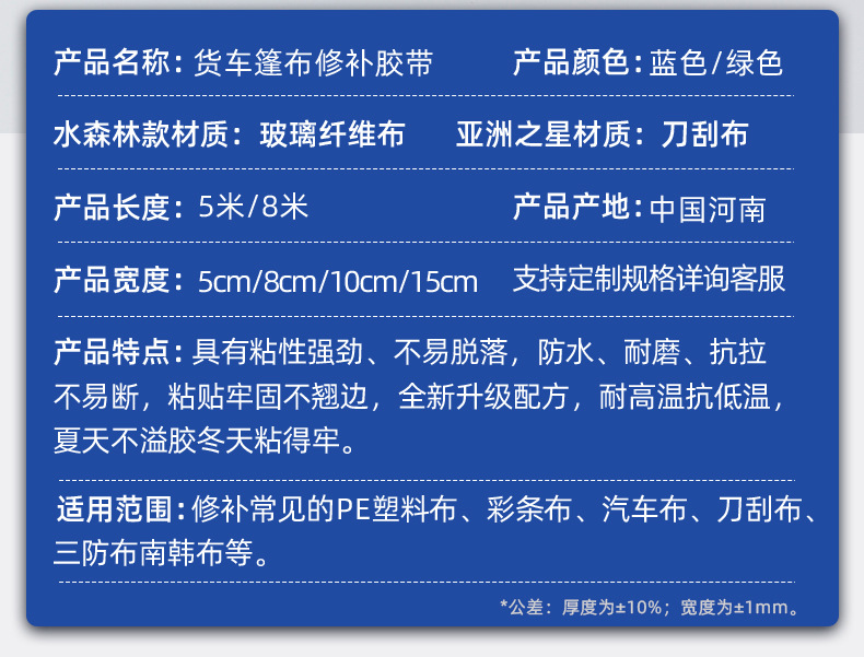 타포린 수리 테이프 고점도 방수 자외선 차단제 유리 섬유 천 트럭 레인 천 칼 스크레이퍼 천 PVC 타포린 누수 방지 테이프